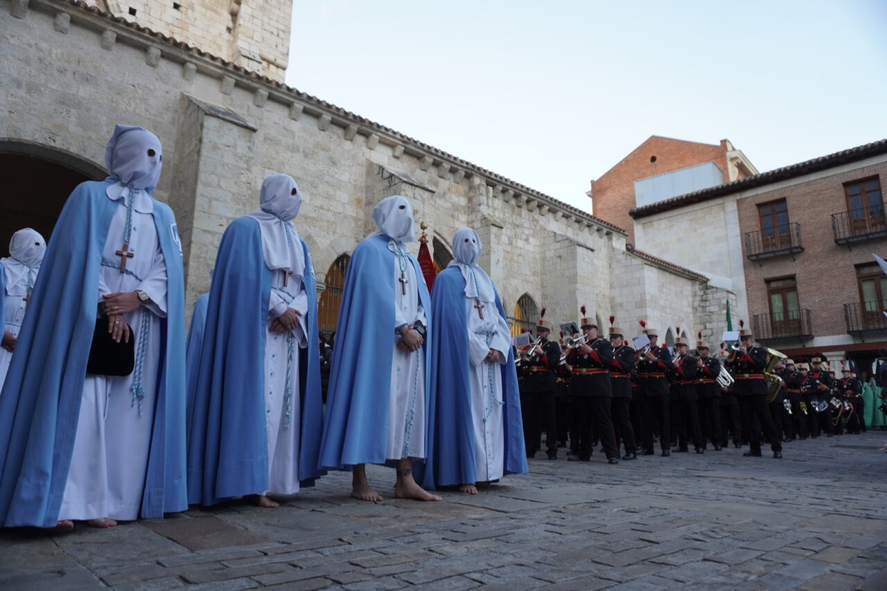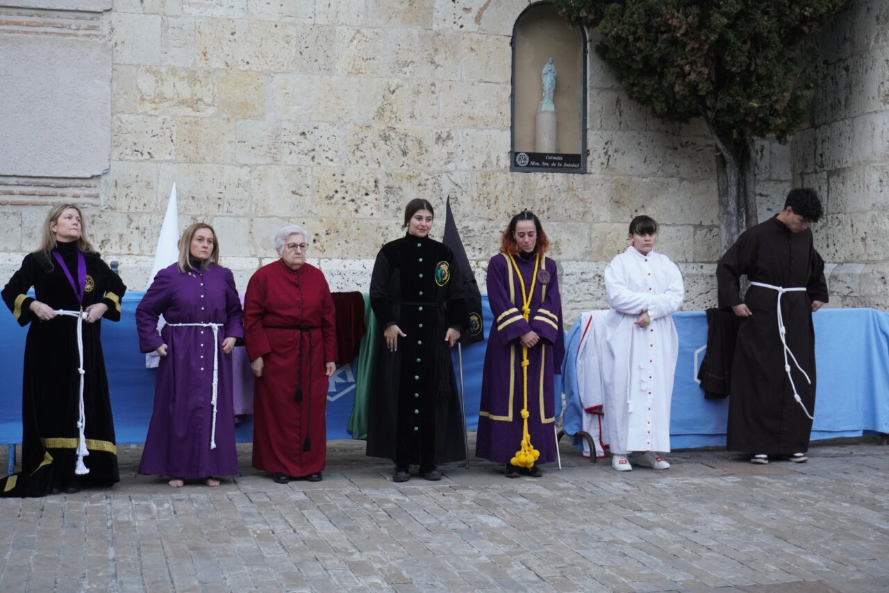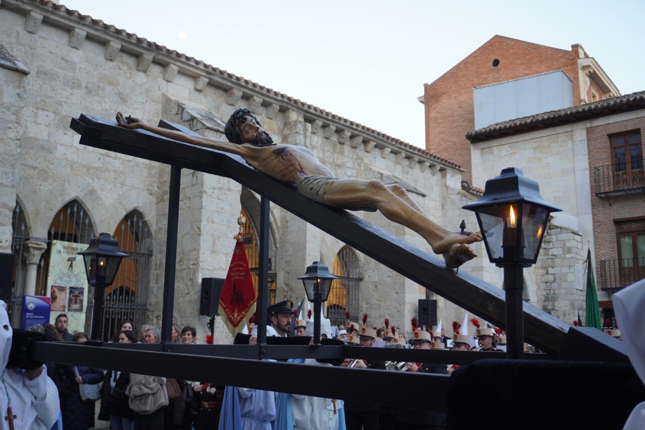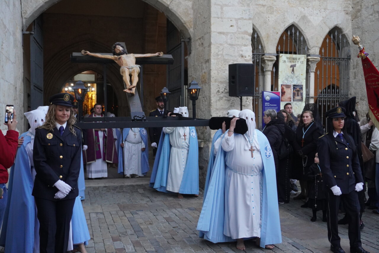 Con el tradicional toque del tararú, y portado a hombros por los hermanos de la Cofradía Penitencial de Nuestro Padre Jesús Crucificado y Nuestra Madre Dolorosa, salió de la iglesia de San Francisco la imagen de N. P. Jesús Crucificado de Alejo de Vahía, una de las joyas de la Semana Santa palentina, acompañado por las melodías y ritmos de la banda de la Agrupación Musical de la Cofradía de la Oración del Huerto y Vera Cruz de Medina del Campo (Valladolid).