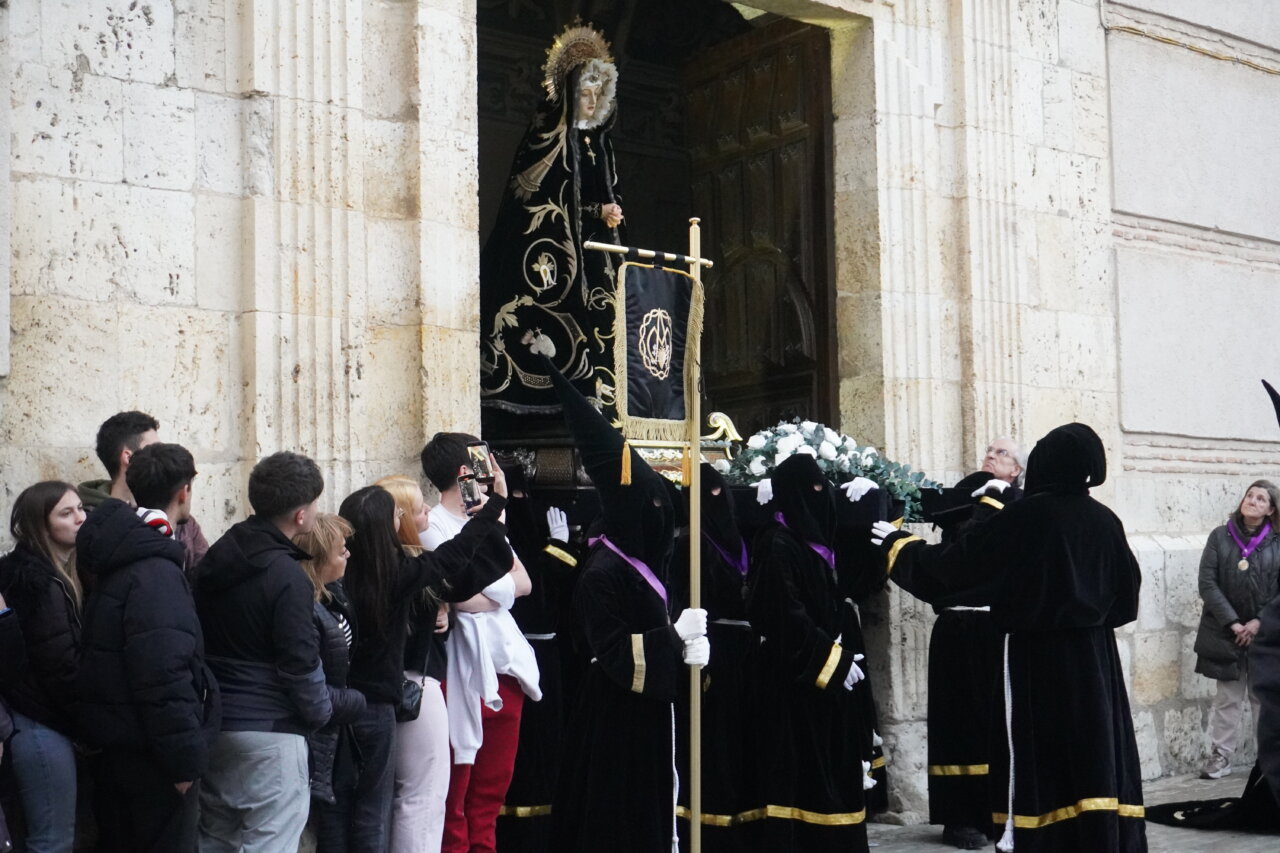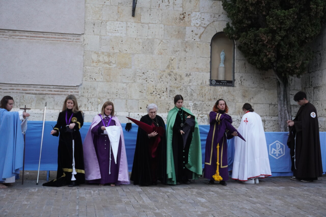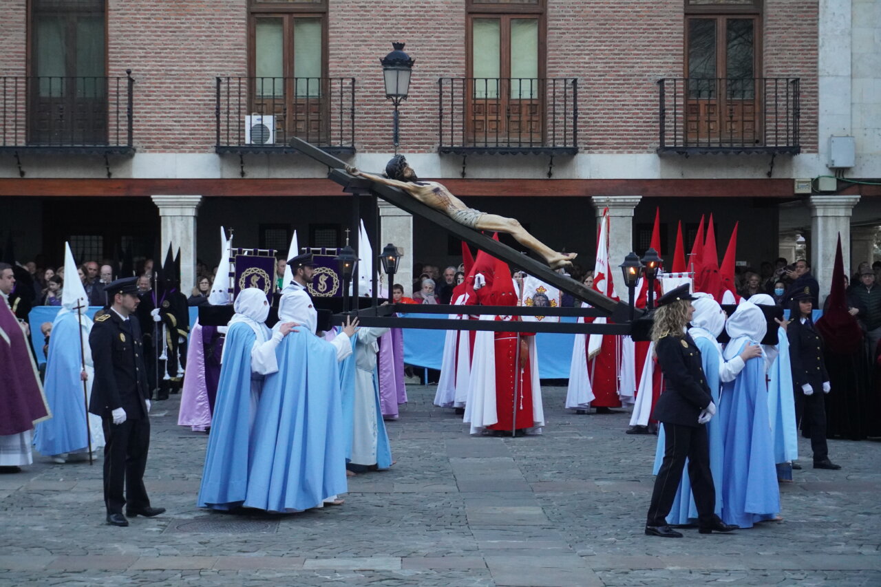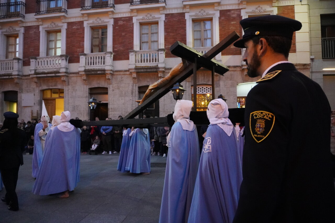 Con el tradicional toque del tararú, y portado a hombros por los hermanos de la Cofradía Penitencial de Nuestro Padre Jesús Crucificado y Nuestra Madre Dolorosa, salió de la iglesia de San Francisco la imagen de N. P. Jesús Crucificado de Alejo de Vahía, una de las joyas de la Semana Santa palentina, acompañado por las melodías y ritmos de la banda de la Agrupación Musical de la Cofradía de la Oración del Huerto y Vera Cruz de Medina del Campo (Valladolid).