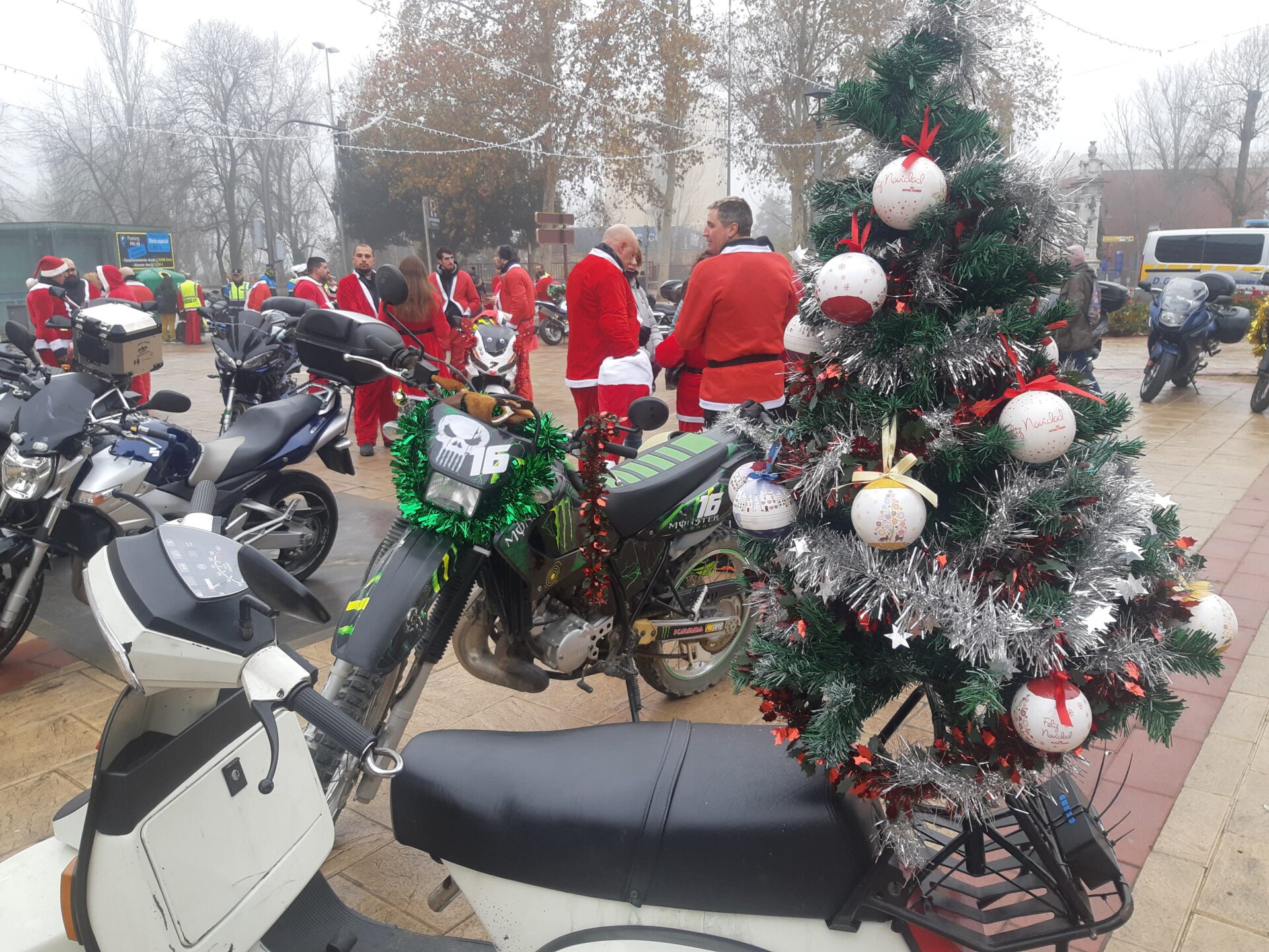 Cientos de moteros, disfrazados de Santa Claus, recorren varios centros de la ciudad para transmitir el calor de la Navidad y recoger alimentos para el Banco de Alimentos