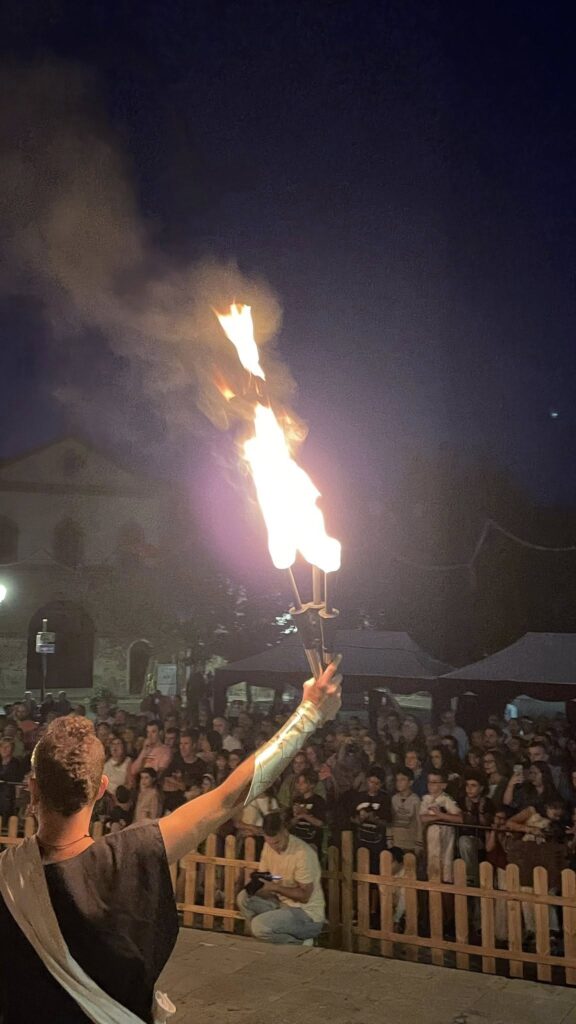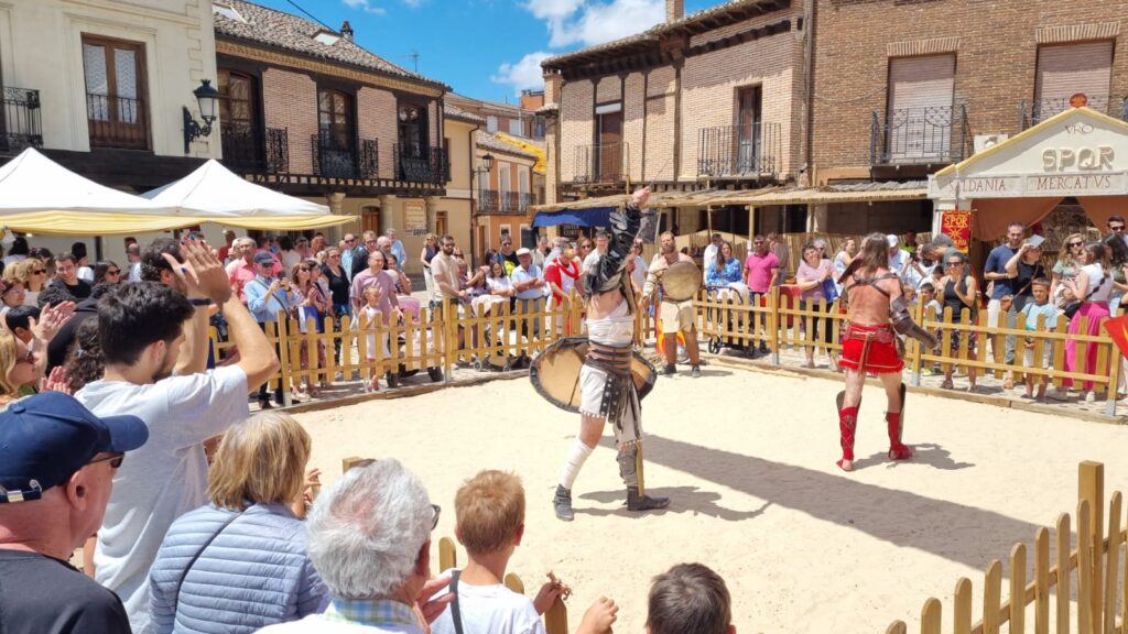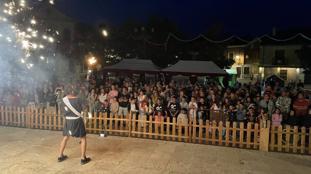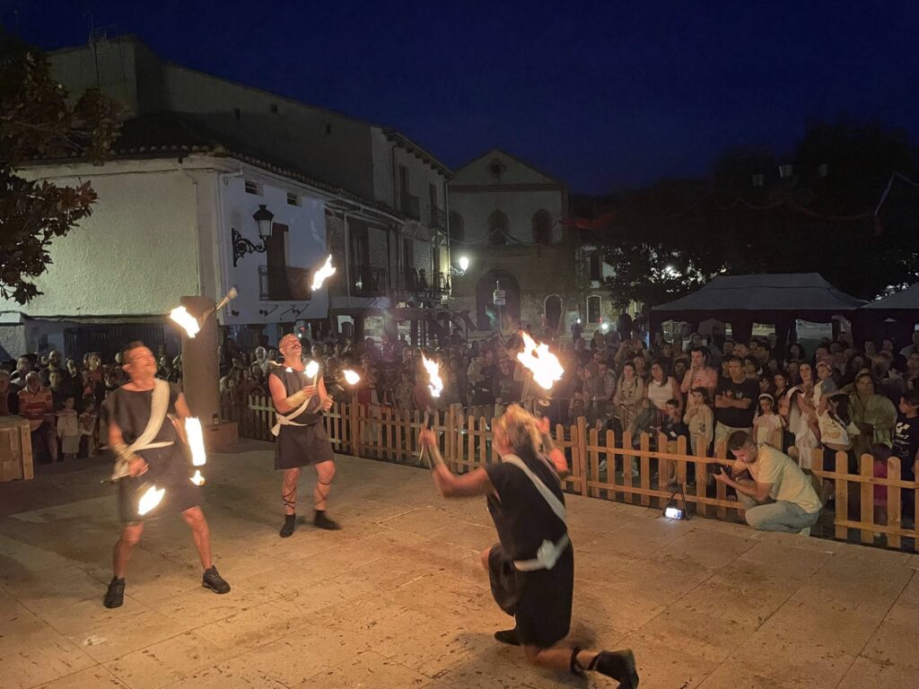 Tras los fastos de la mañana del sábado cuando se dio por inaugurado el mercado, durante la tarde tuvo lugar una demostración de lucha de gladiadores, y durante la noche un espectáculo de fuego en la plaza de España.