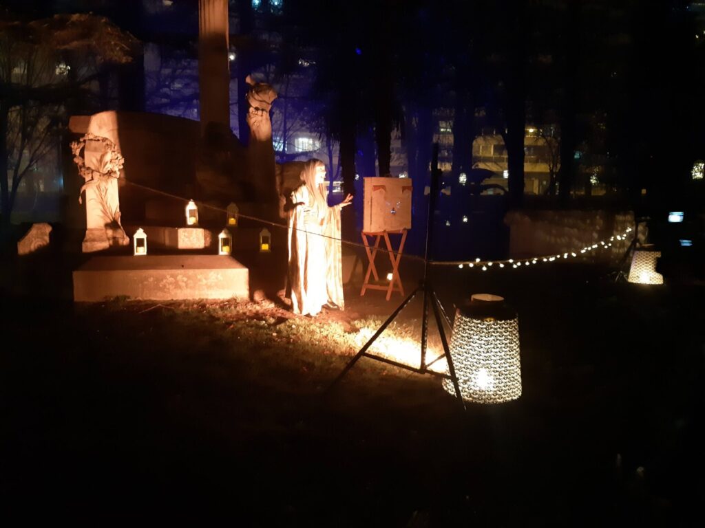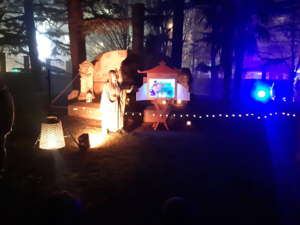 No faltan ilusiones ópticas intangibles, microteatro kamishibai, y decenas de puntos donde sacar una mágica imagen, jugar con las luces y los elementos instalados o quedarse embobados viendo cómo la ermita de San Juan se desintegra ante los ojos engañados por la luz y el videomapping. Por cierto, no solo en la portada habrá representaciones lumínicas, también el lienzo posterior del templo se utilizará como pantalla para proyectar imágenes y luces.