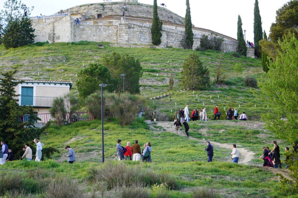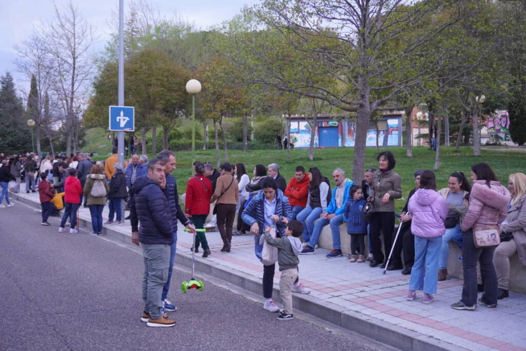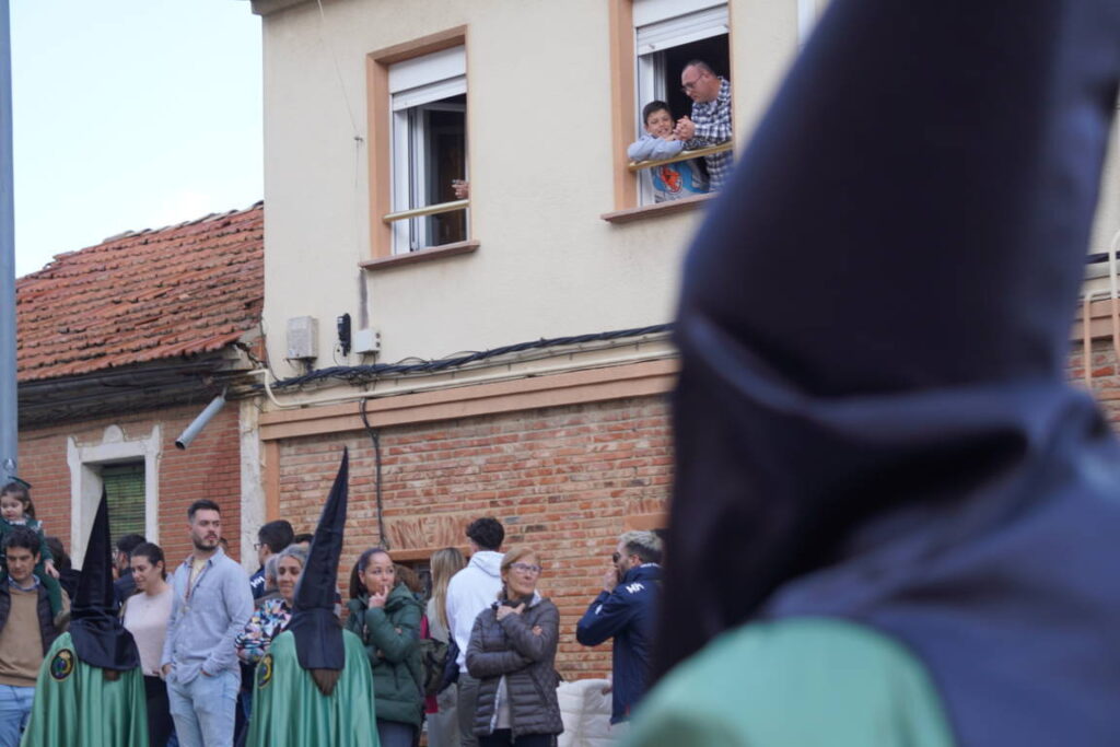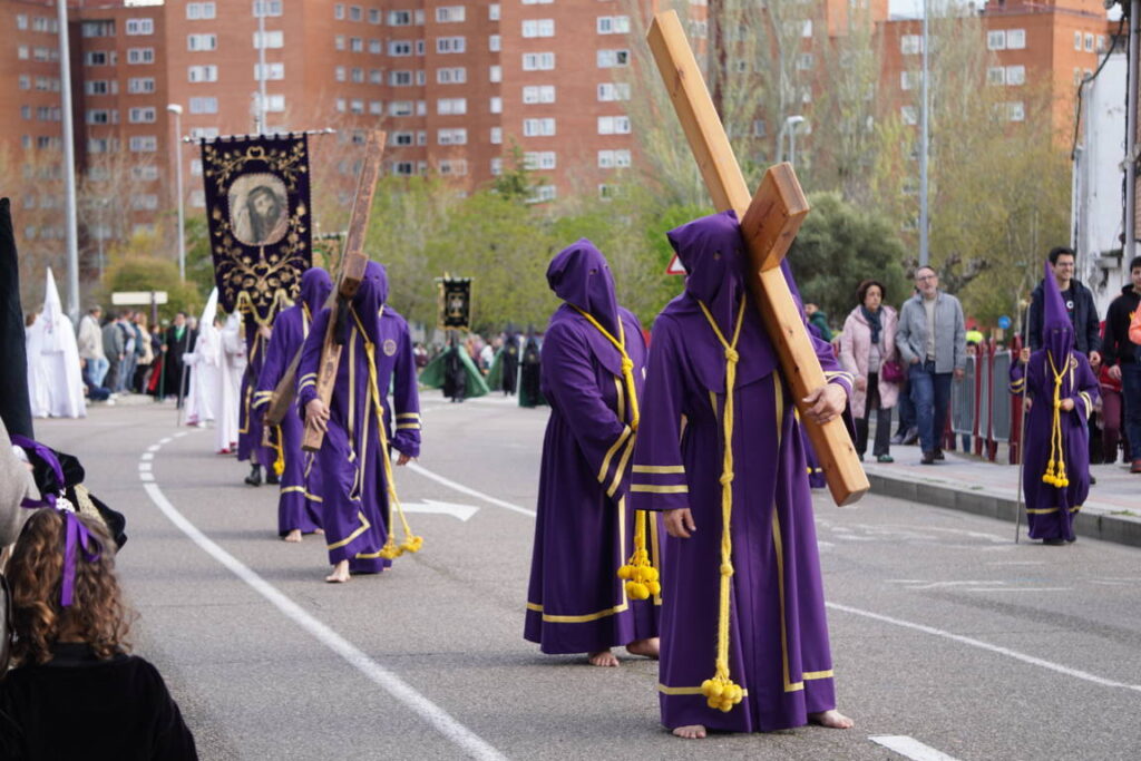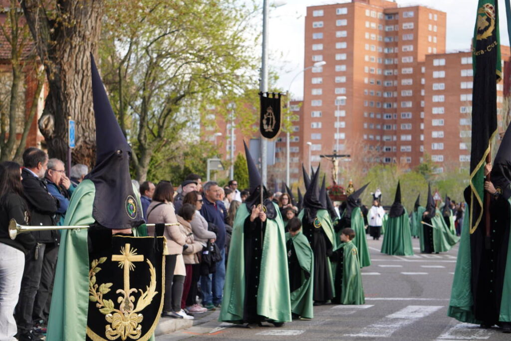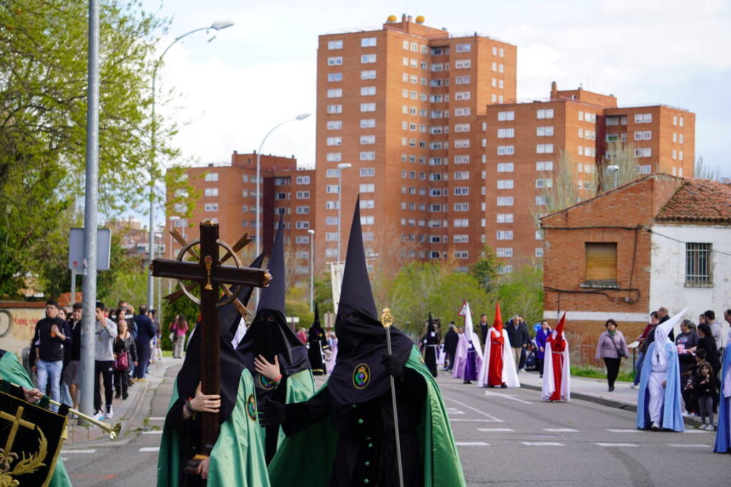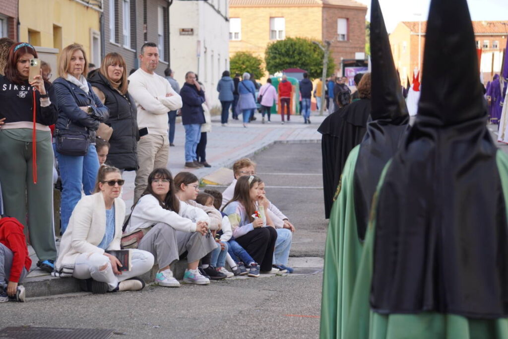 Si por la mañana las palmas ondearon bajo un cielo encapotado y con el miedo a la lluvia, la tarde trajo sol e incluso calor, aunque a lo lejos, desde el Cerro del Otero y mirando al sur, se veía cómo las nubes descargaban en algún punto. Pero no en Palencia. El cielo fue clemente con una de la procesiones más llamativas de la Semana Santa Palentina. La que llega a lo más alto de la ciudad, a los pies del Cristo del Otero: Donde tiene lugar una dase las imágenes más icónicas. Una que sólo se puede dar en Palencia. El cruce de ‘un’ Cristo, con ‘una’ Virgen a los pies del Cristo del Otero.