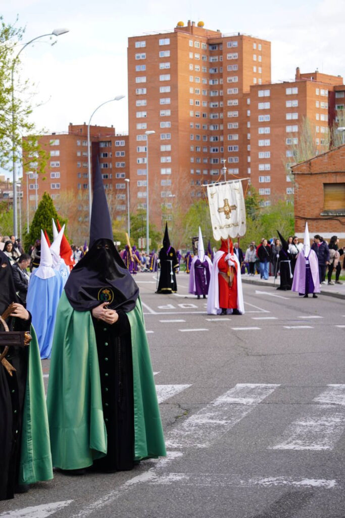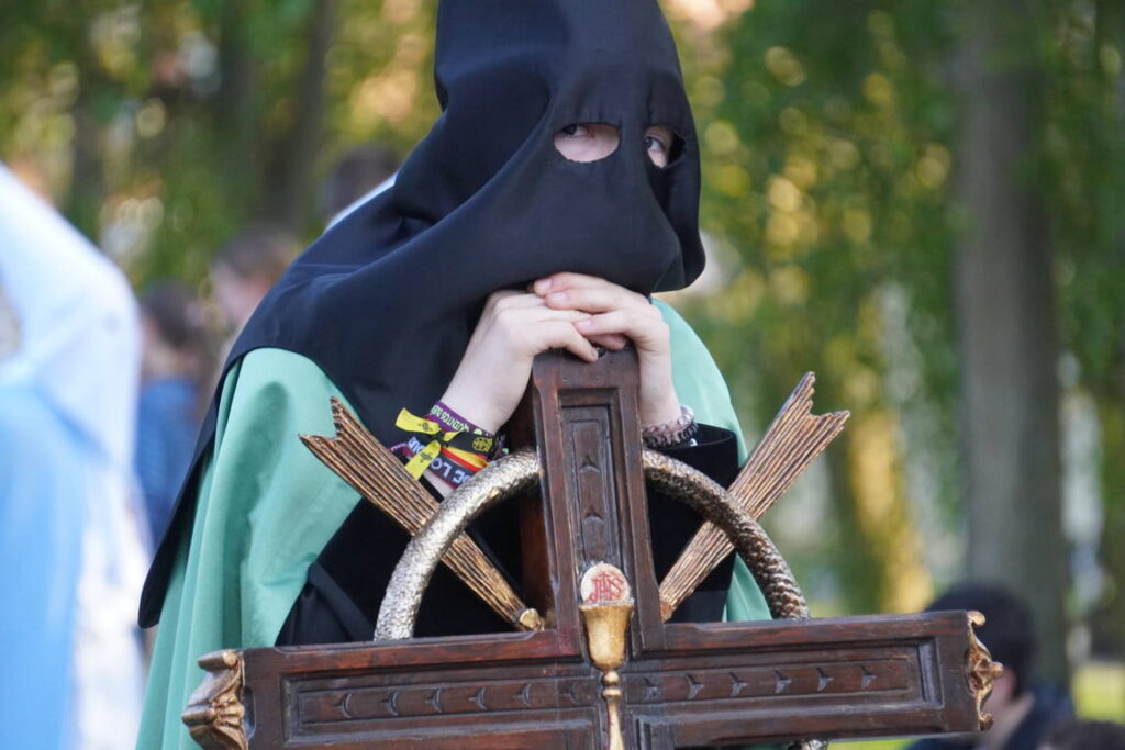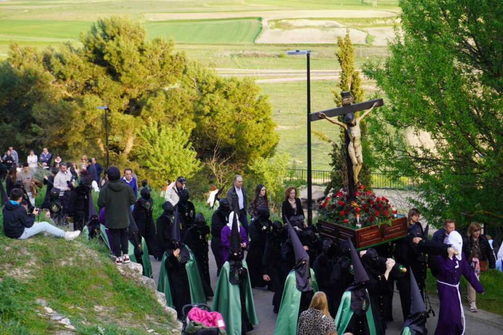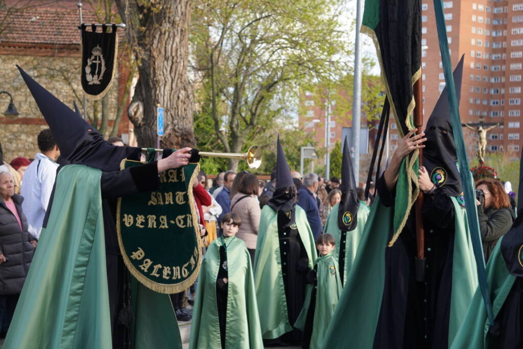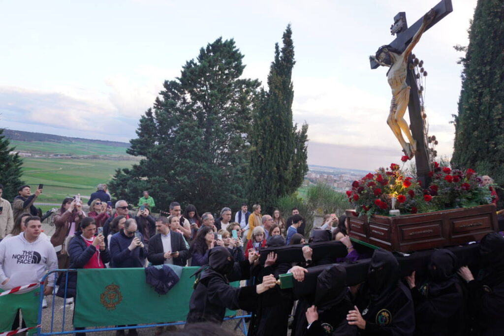 De ahí, a afrontar la subida a lo más alto de Palencia. Al Cristo del Otero ante la presencia de centenares de personas que bien observaban a lo largo del Paseo o ya eligieron apostarse en la carretera del Cerro para ver el ascenso de las dos tallas principales y de las cruces portadas por penitentes nazarenos y de los cofrades de las diferentes cofradías de la Vera Cruz de la provincia y de Valladolid que se acercaron a participar en la de la cofradía capitalina.