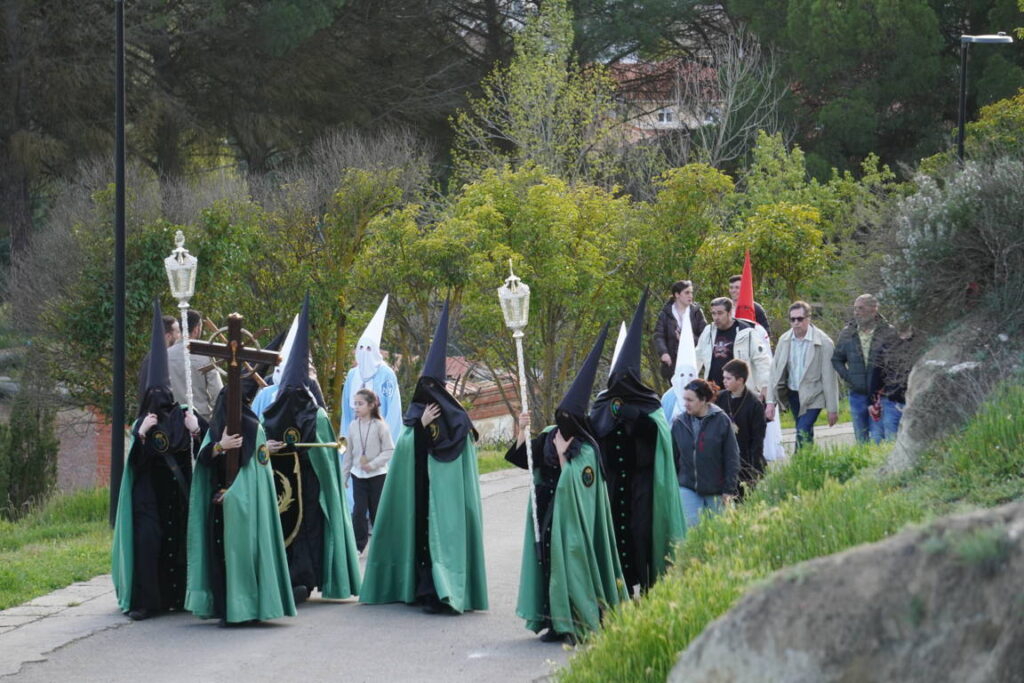 Antes, la procesión, organizada por la Real, Muy Antigua, Venerable y Dominicana Cofradía Penitencial y Sacramental de la Santa Vera Cruz de Nuestra Señora Madre de la Iglesia, del Niño Jesús y de la Santa Resurrección de Cristo, para todos la Vera Cruz, partió de su sede y fue ‘recogiendo’ a las dos tallas que dan sentido al desfile. En el convento de las Dominicas, a Nuestra Señora del Dolor (Anónimo S XIX), rezando allí el primer misterio; y en San Pablo al Santísimo Cristo de la Vera Cruz (anónimo, 1522) con el segundo misterio.