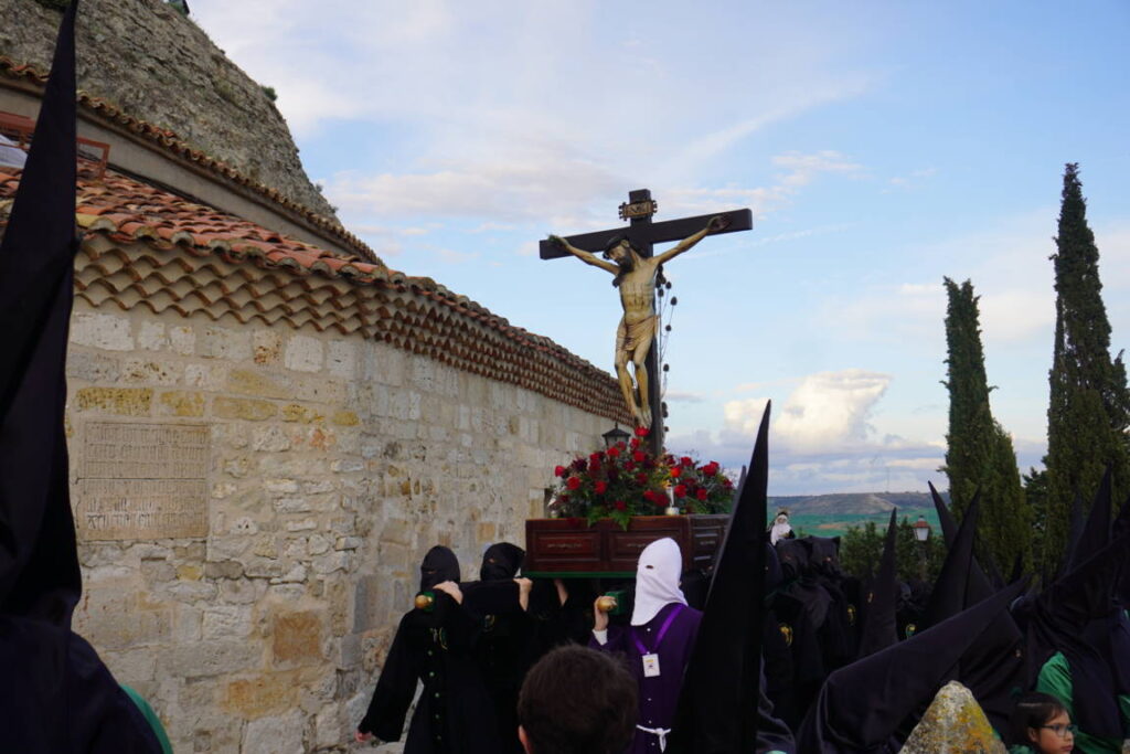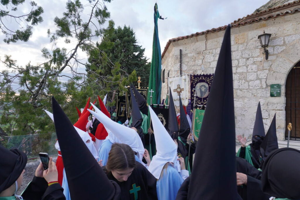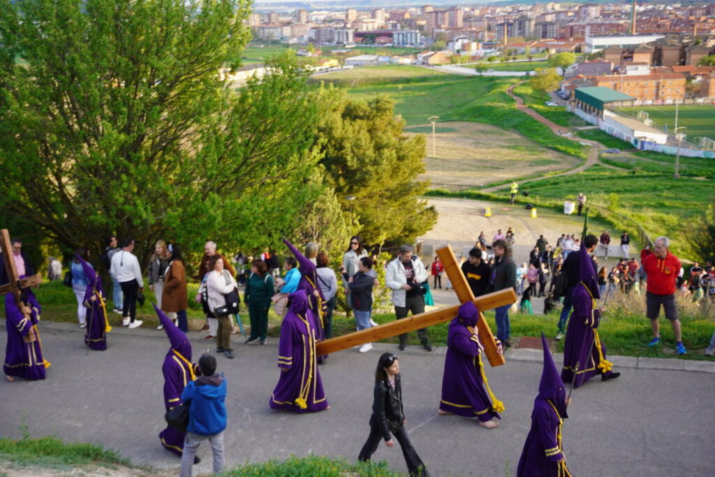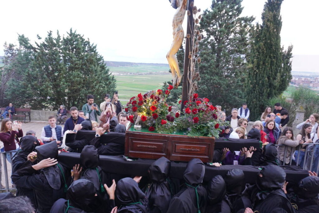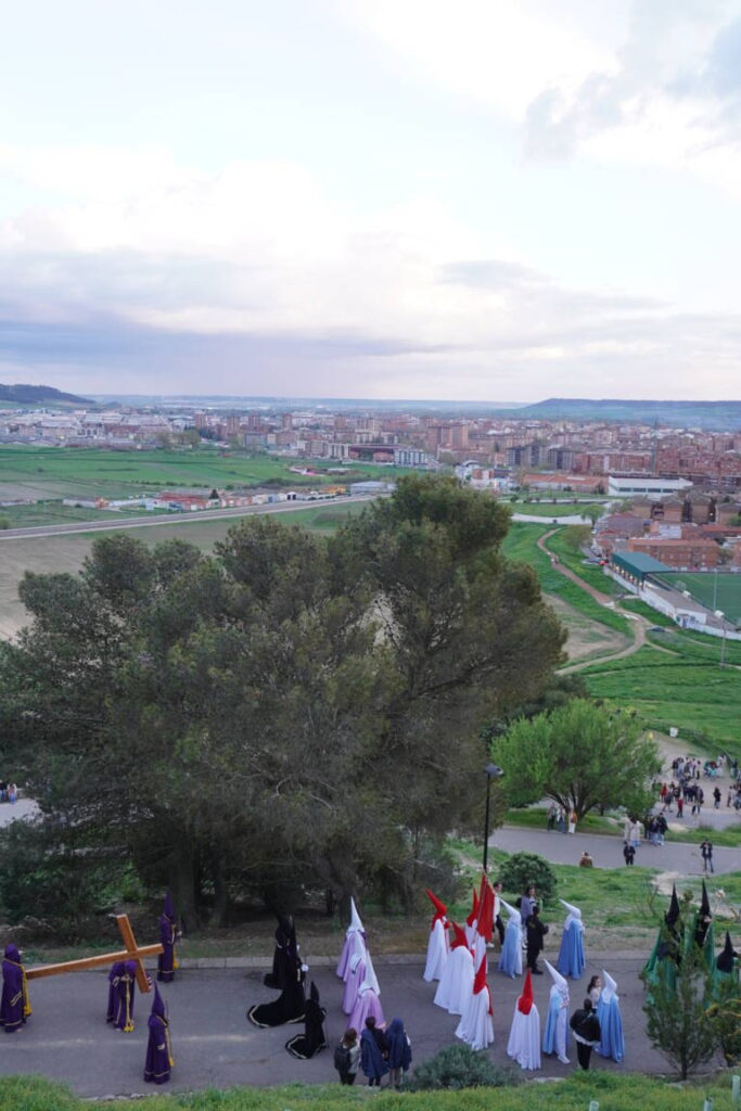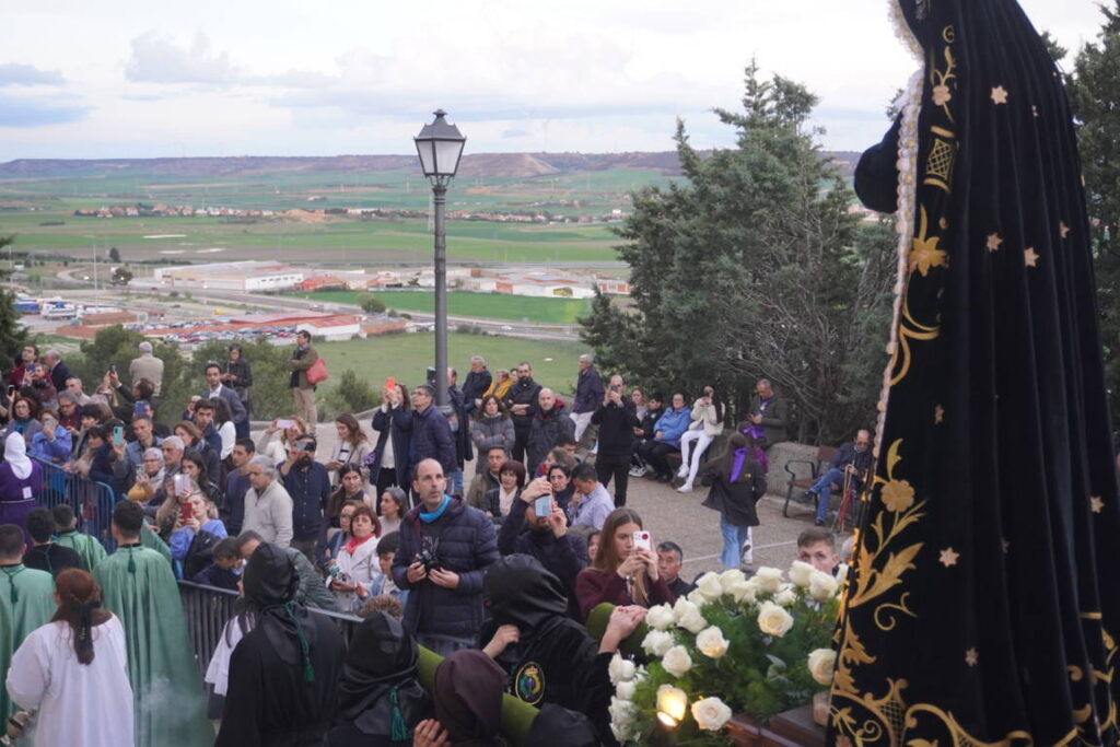 Ya arriba, y mientras el Santísimo Cristo de la Vera Cruz y Nuestra Señora del Dolor se ‘miraban a la cara’ bajo la bendición del Cristo del Otero, en torno a las 20,30 horas (casi dos horas y media de procesión) se rezó casi en petit comité, dado que la plataforma bajo el Cristo del Otero no es muy grande, el quinto misterio y las letanías.