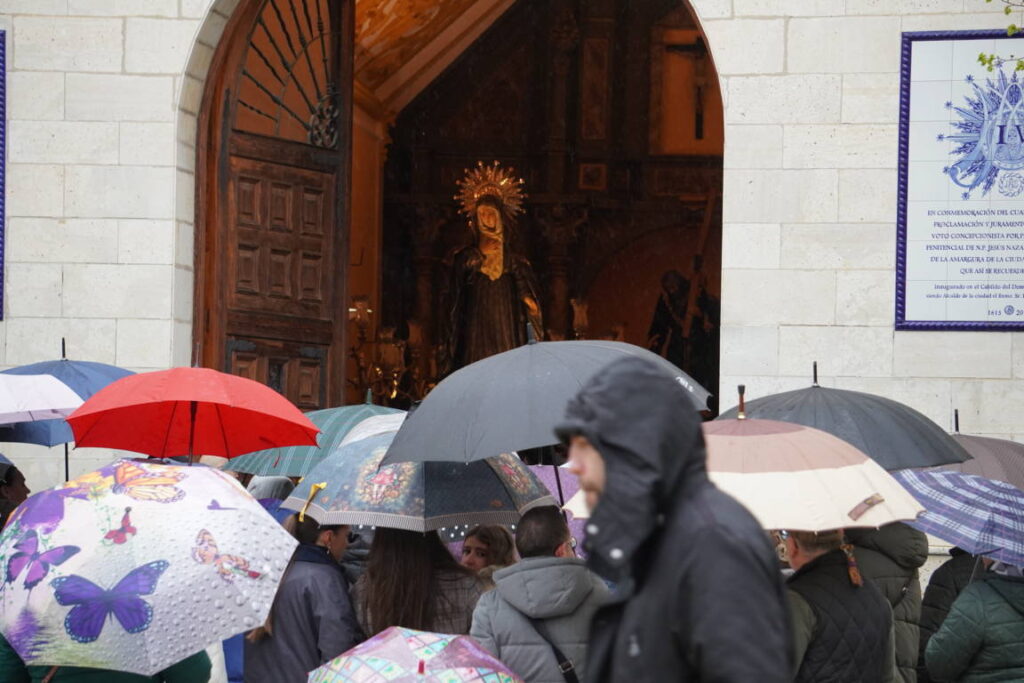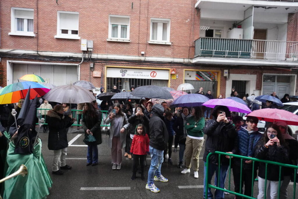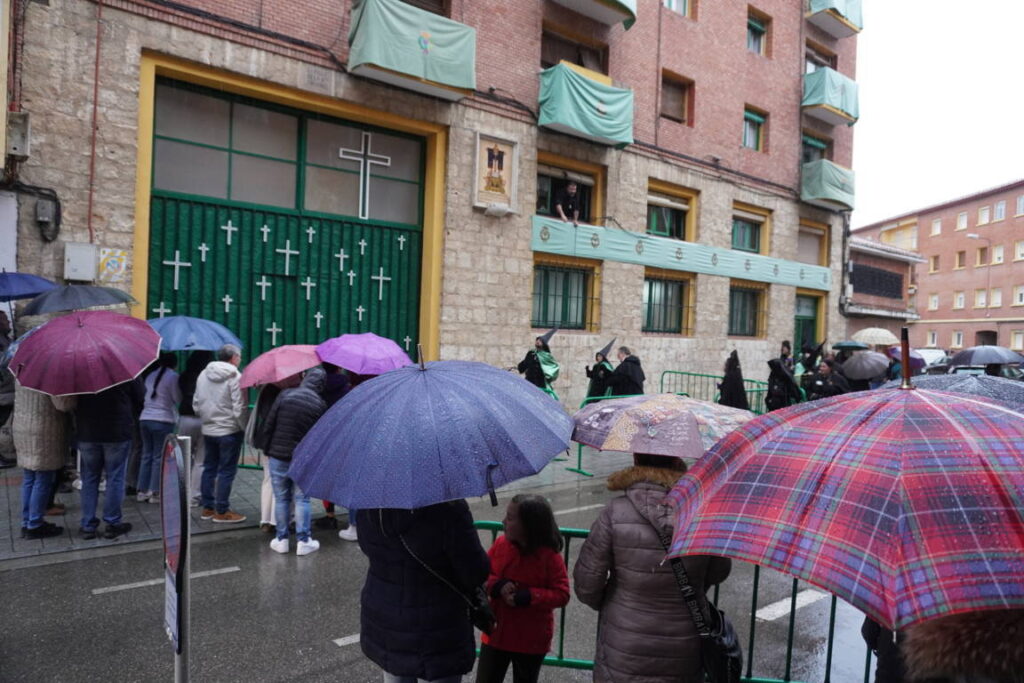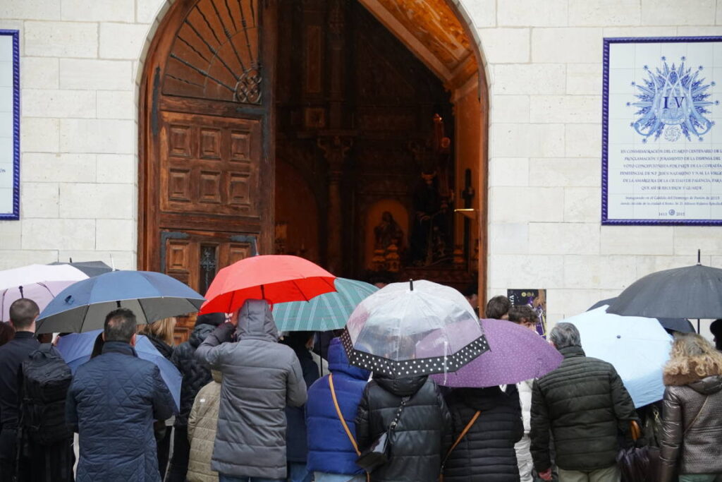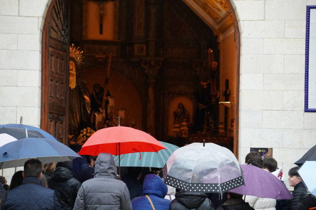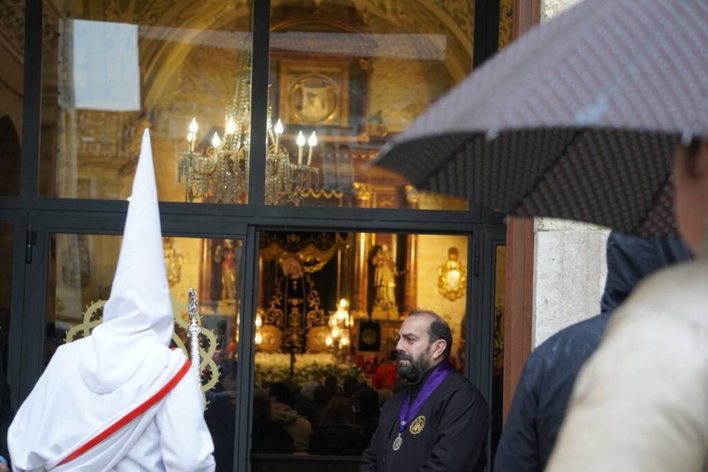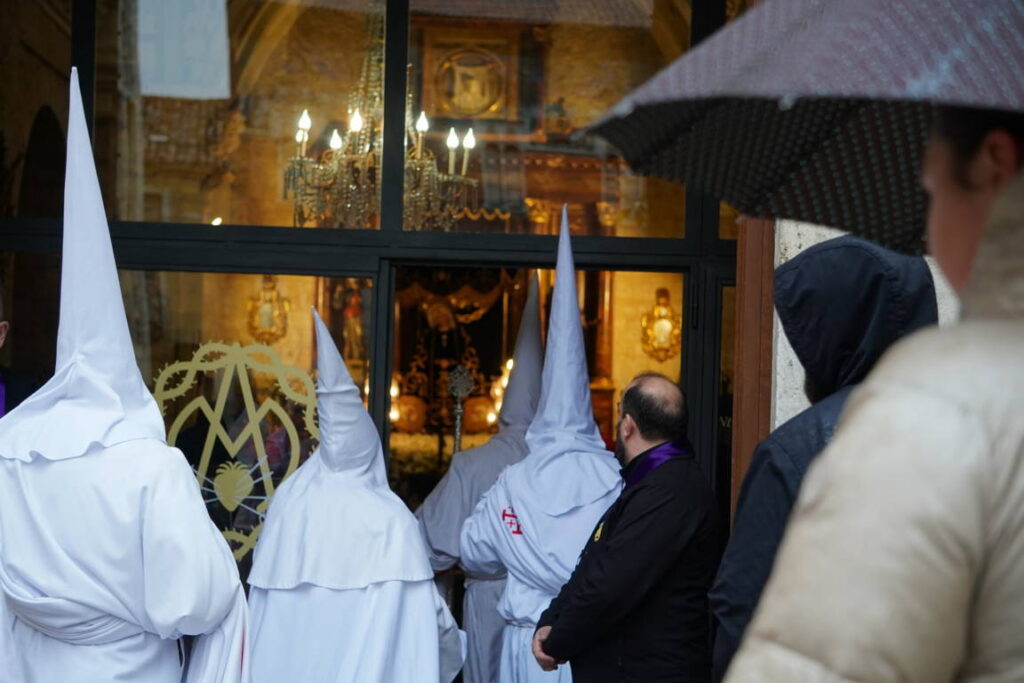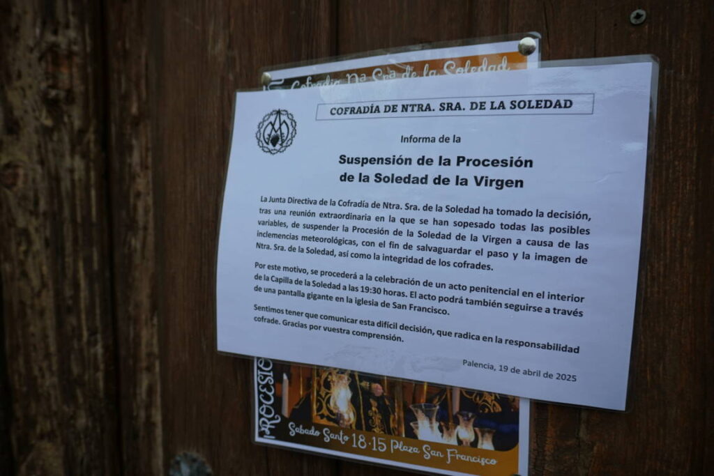 No era una decisión fácil, nunca lo es quedarse en ‘casa’, pero fue la acertada. Aunque cuando se tomó del cielo no caía ni una gota, las predicciones acertaron y el agua se precipitó, vaya si se precipitó, sobre Palencia en el tiempo en que la procesión de La Soledad de la Virgen, conocida popularmente como la de las Vírgenes.