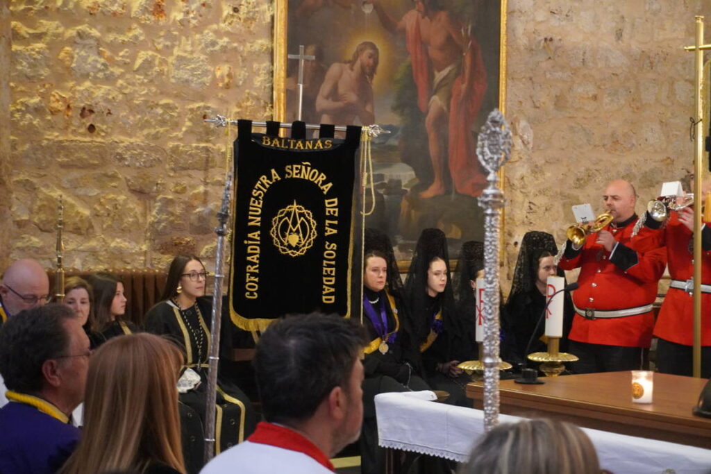 Además de los cofrades de La Soledad, otros miembros de hermandades palentinas también se acercaron a la capilla de La Soledad.