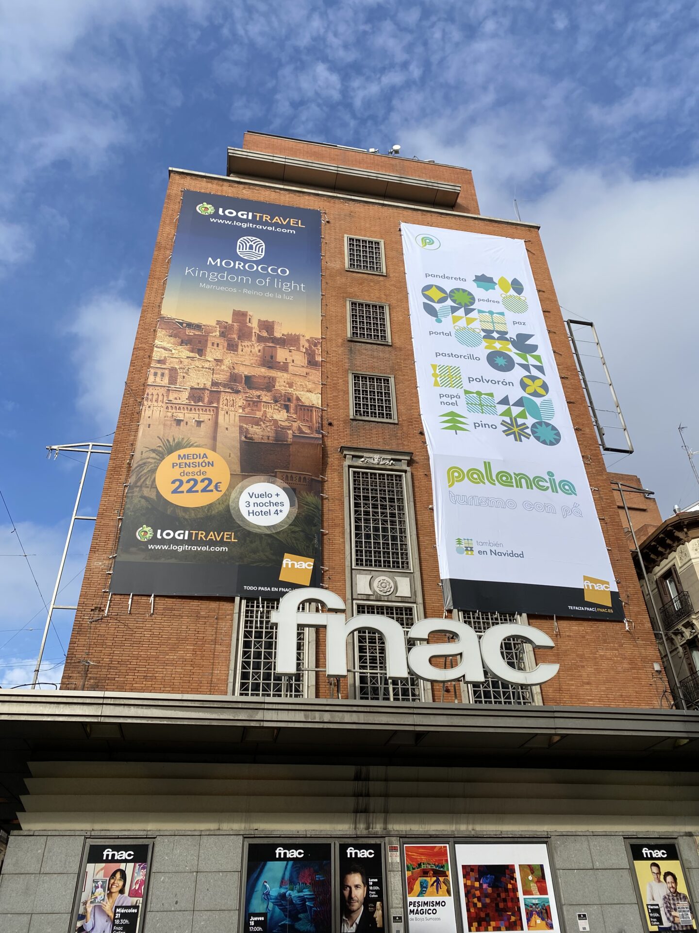 Porque de nuevo Callao, pero ahora sobre la fachada del edificio de Fnac mostrará la imagen publicitaria turística de Palencia. La de Turismo con Pe, de Palencia.