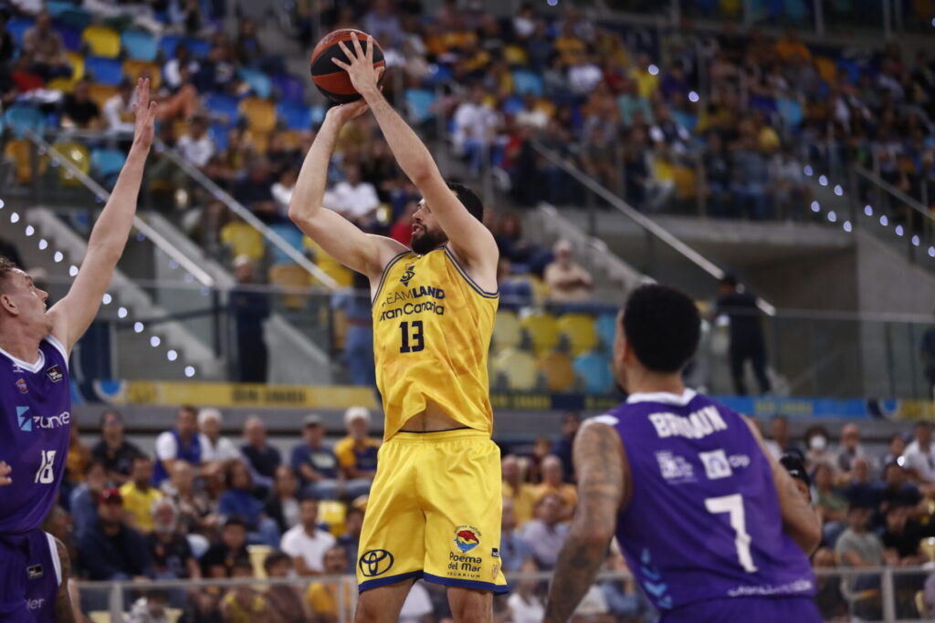 Al final del primer cuarto, 22-13 para los canarios, merced a un lanzamiento de dos in extremis.