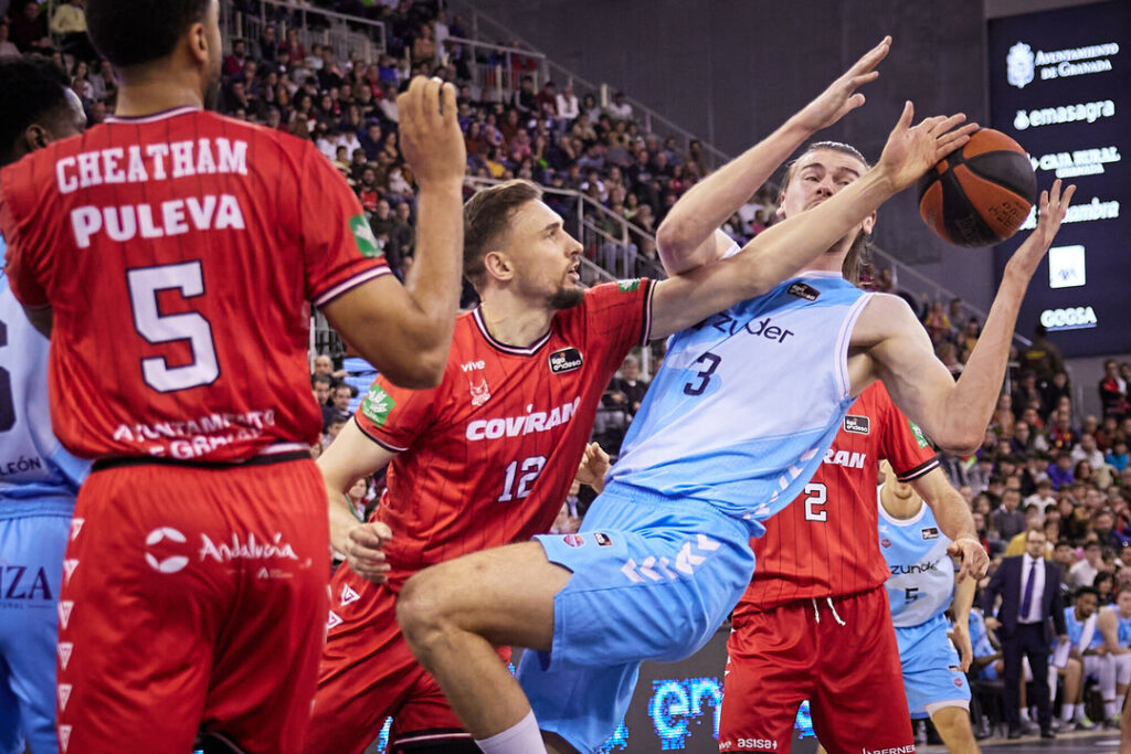 Un chispazo le duró al Zunder Palencia la reacción tras el descanso. Dos buenos ataques, una buena defensa y… como el Reino de Granada hace más de 500 años,  claudicó. 65-44 consumidos tres minutos del tercer tiempo. Y los granadinos parecía que se enfrentaban a un sparring. Con pases por la espalda. Taponando, gustándose. Encestando todo lo que tiraban ante un pabellón que gritaba como unas huestes enfurecidas cada triple de los suyos. Y fueron muchos.  Hacían con el Zunder, cuya única idea de baloncesto era tirar de tres cuando pudiera, lo que querían. Y con Franke sin haberse quitado el cubre en el banquillo. 70-45 a falta de poco menos de cinco minutos para el final de tercer cuarto.