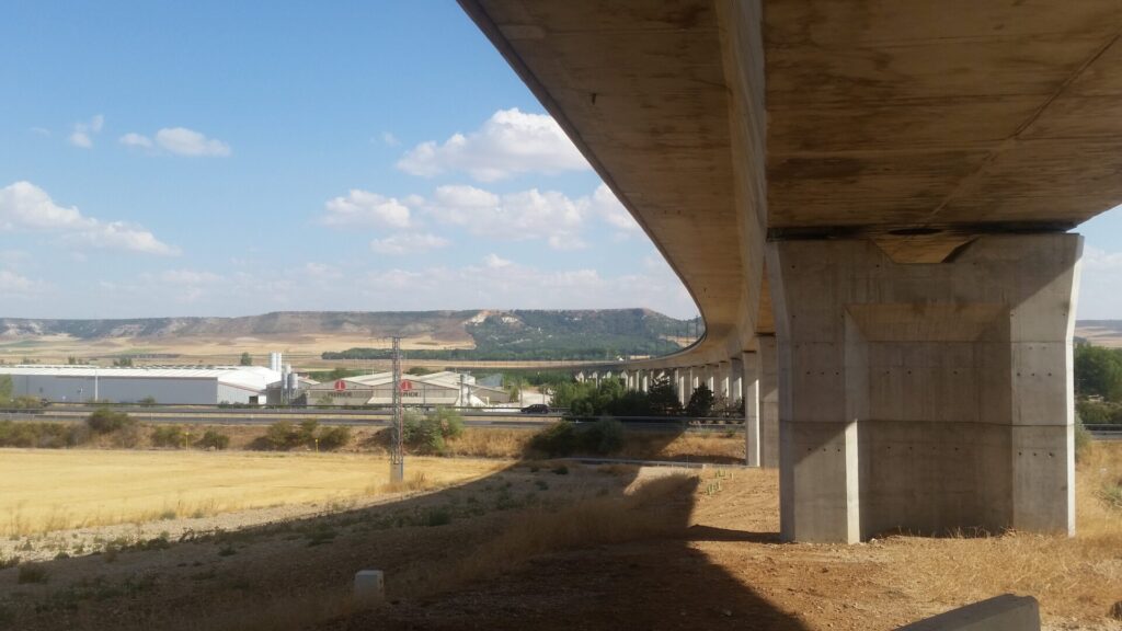 Pero no hay que irse tan lejos para ver obras ya realizadas por esta empresa. Basta con acercarse a Venta de Baños, en el punto en el que la Línea de Alta Velocidad procedente de Palencia separa sus ramales para dirigirse a Burgos y a Valladolid. Los viaductos que salvan la A-62 y la N-620 fueron realizados por esta constructora, que podría ser, a falta de la conclusión del proceso de adjudicación, la que culmine el mayor puente construido en la provincia de Palencia.