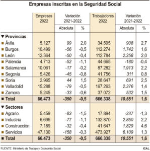 CEOE espera que la tendencia negativa se detenga pero ve la actual situación económica “con mucha expectación, inquietud y preocupación” Castilla y León retornó a la destrucción de tejido productivo en 2022, cuando cerró el ejercicio con 66.473 empresas cotizantes a la Seguridad Social, 350 menos que en 2021 en las mismas fechas, con una […]