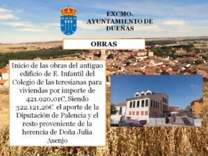 Dueñas ha anunciado el arranque de los trabajos de construcción de viviendas en un antiguo colegio. La rehabilitación en la que se invertirán 421.000 euros – adjudicación final– consiste en la adaptación del inmueble de las antiguas escuelas para 5 viviendas conservando la imagen del edificio. Para ello se crea en las zonas comunes que […]