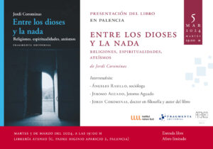 Será en la librería Ateneo el próximo martes, 5 de marzo, a las 19:00 horas Jordi Corominas presentará su libro Entre los dioses y la nada acompañado de la socióloga Ángeles Rasillo y del agricultor y pastor Jeromo Aguado Martínez en Palencia el próximo el martes día 5 de marzo, a las 19 h en la […]