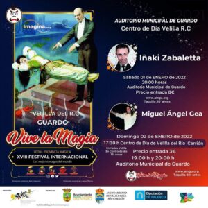 FESTIVAL INTERNACIONAL DE MAGIA DE CyL Sábado 1, 20:00 h Auditorio Municipal Guardo. IÑAKI ZABALETTA* (Mago argentino). Para todos los públicos. Entrada a 8 € en www.amgu.org o en taquilla del auditorio el mismo día de la función desde 30’ antes. Domingo 2 de enero, el televisivo ilusionista MIGUEL ÁNGEL GEA actuará a las 17:30 […]