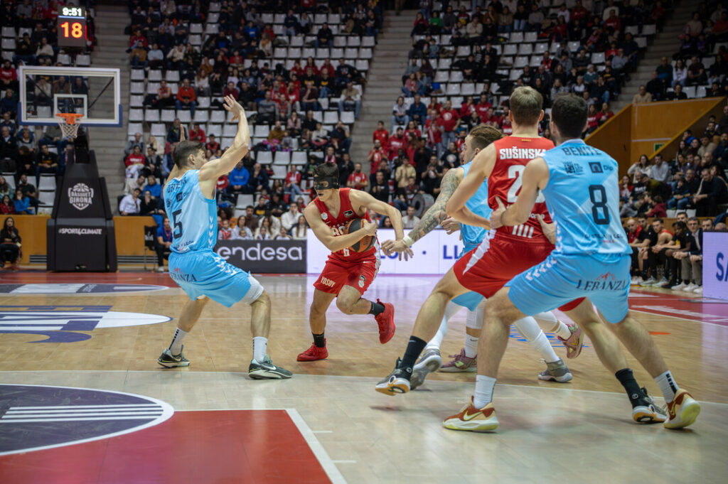 El pívot letón se comió la zona, el campo. Entró, machacó, robó y contraatacó, y sacó faltas que fueron eliminando rivales como Goloman. Y, además, metió los tiros libres.