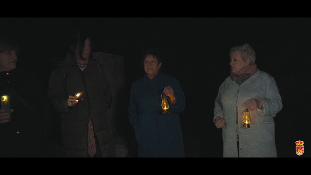 Vecinos de Herrera de Valdecañas encendiendo velas en un vídeo navideño.