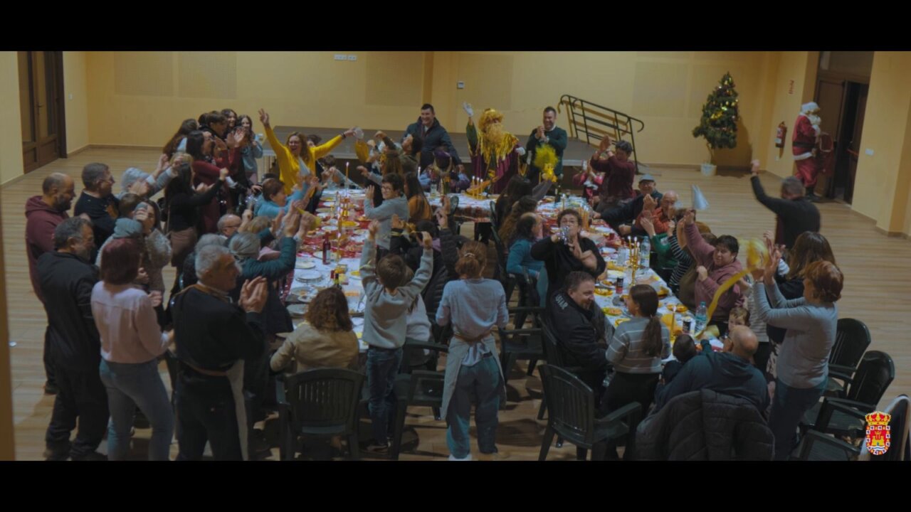 Vecinos de Herrera de Valdecañas celebrando la Navidad en una cena comunitaria