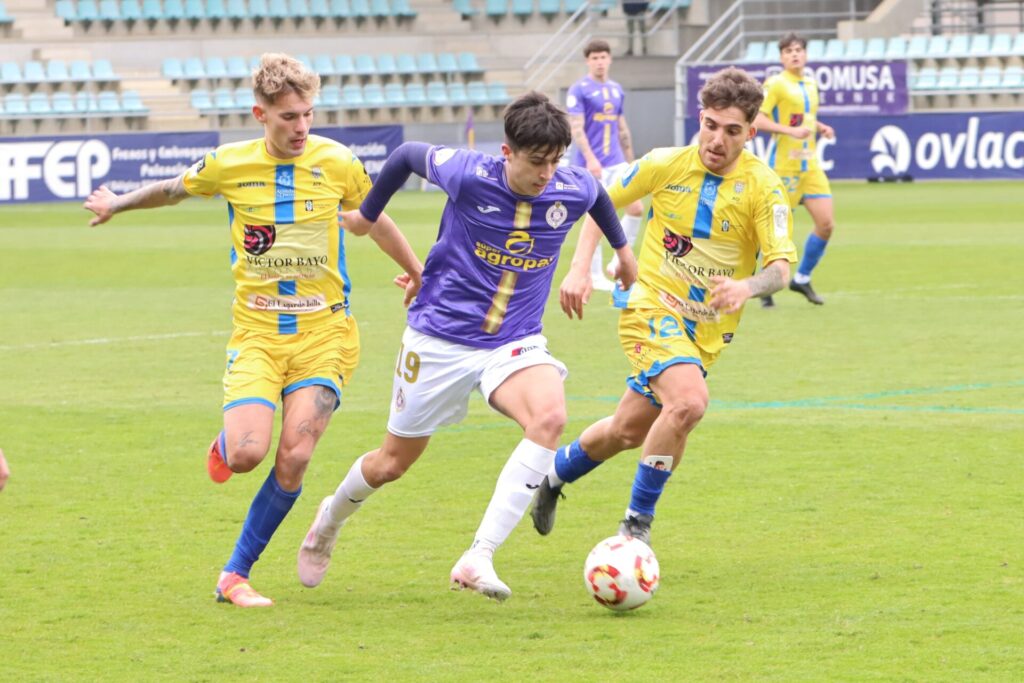 El partido comenzó con mucha intensidad, presión alta y una lucha feroz en cada metro del campo. El PCA fue quien llevó la iniciativa en estos compases, estando mejor puesto sobre el terreno, aunque las ocasiones fueron contadas. La delantera buscaba romper el bloque burgalés, pero sin la claridad suficiente, con imprecisiones. La Arandina, bien plantada, apenas generó peligro hasta el tramo final del primer tiempo. Fue entonces cuando los visitantes tuvieron las más claras. En el 44’, Amis estrelló un remate en el palo y, en el rechace, Mario Sánchez falló con todo a su favor. Justo antes del descanso, los burgaleses volvieron a rondar el gol, pero la zaga morada supo resistir.