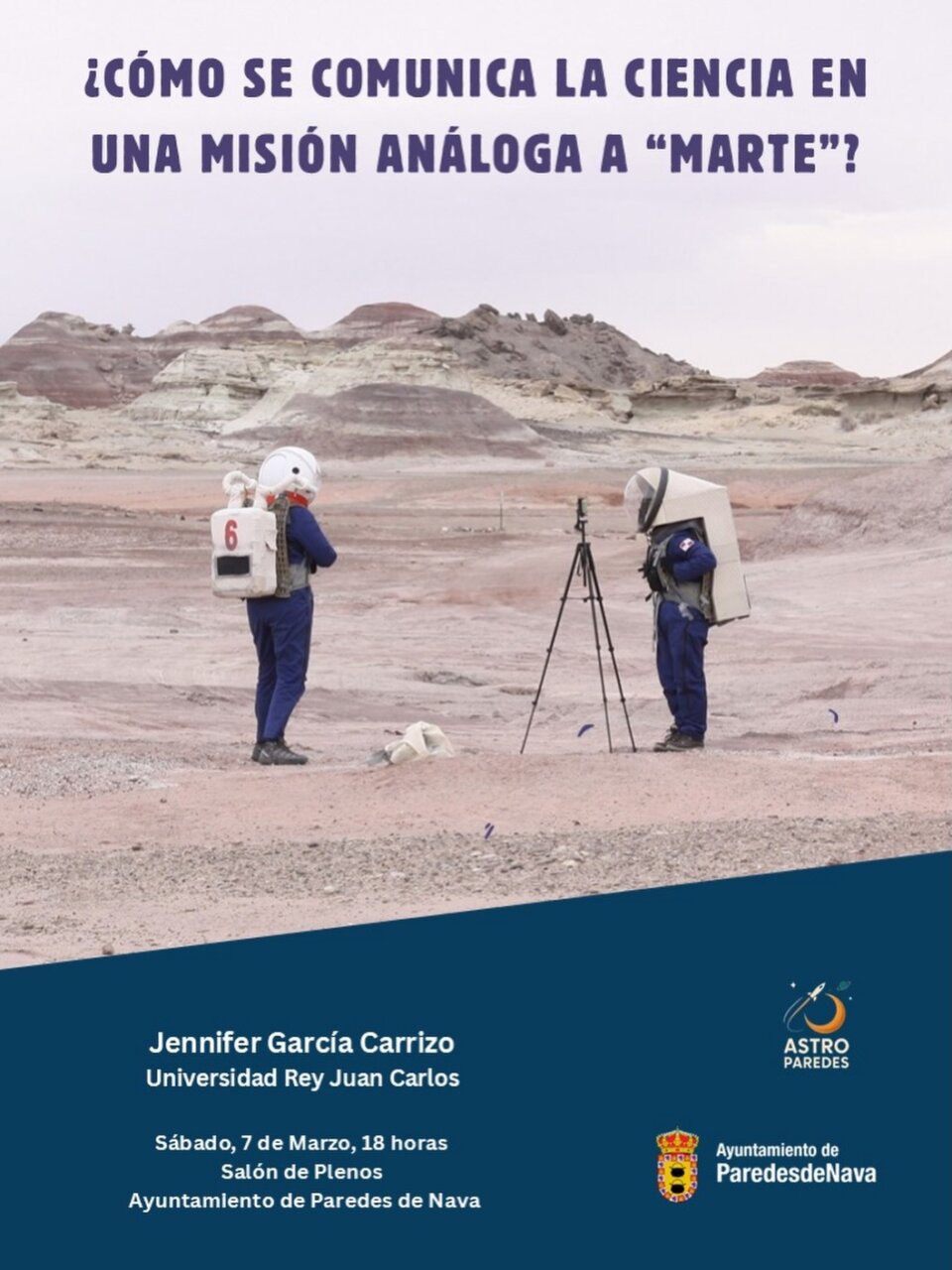 Cartel de la charla ¿Cómo se comunica la ciencia en uan misión análogo a 'Marte'?, en Paredes de Nava