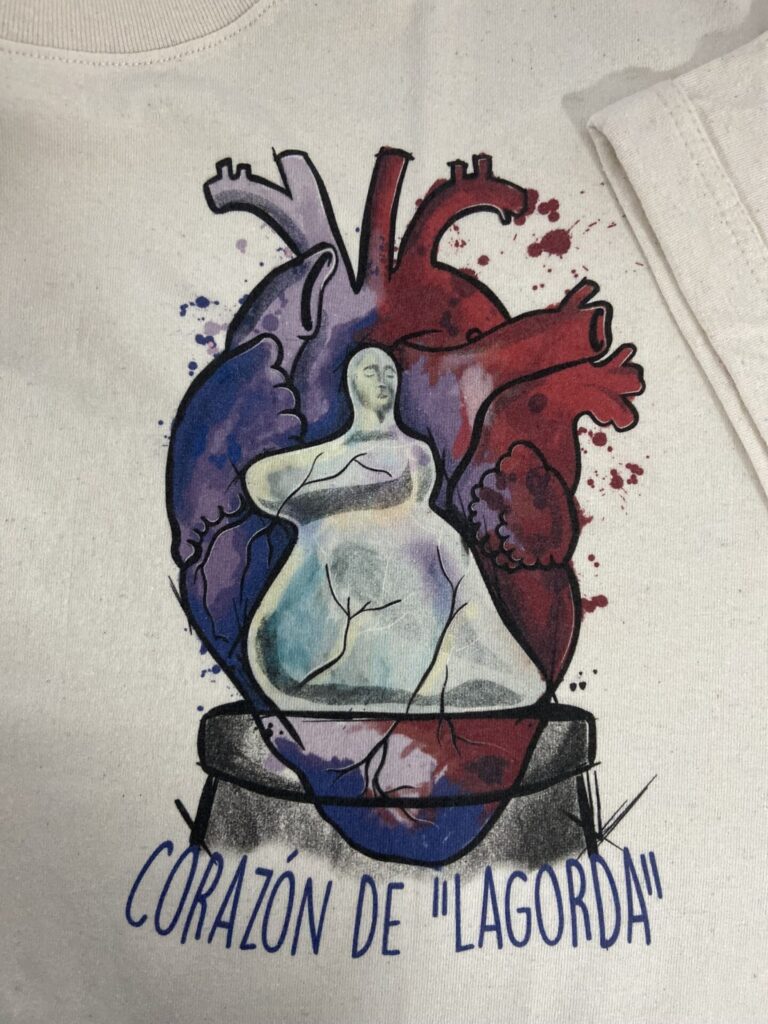 El corazón palentino hace homenaje a la famosa escultura de “La mujer” conocida popularmente como “La Gorda”, ubicada en el centro palentino, y cuyo icono se ha convertido en un emblema que ahora también sirve de inspiración a esta artista.