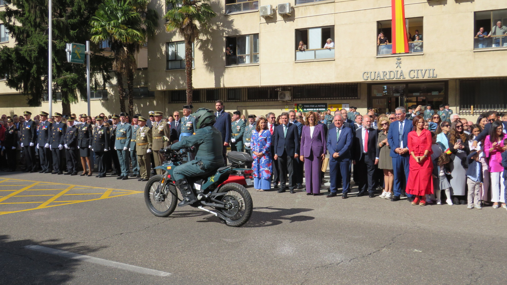 La Comandancia de la Guardia Civil de Palencia volvió a vestirse de gala este 12 de octubre para celebrar la festividad de la Virgen del Pilar, patrona del cuerpo. Fue el primer acto oficial del nuevo teniente coronel, Juan Manuel Lombardero, al frente de la Comandancia, acompañado también por el subdelegado del Gobierno, Eduardo Santiago, que también debutaba en el evento tras asumir el cargo hace apenas unas semanas.