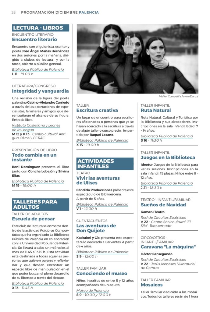 La Consejería de Cultura y Turismo ha presentado cuarenta actividades dentro de la programación cultural para el mes de noviembre en la provincia de Palencia en la red de centros culturales de la Junta de Castilla y León. El programa incluye ocho exposiciones, dos representaciones de artes escénicas, tres conciertos, tres actividades en torno a los libros, dos talleres para adultos y 18 actividades infantiles.