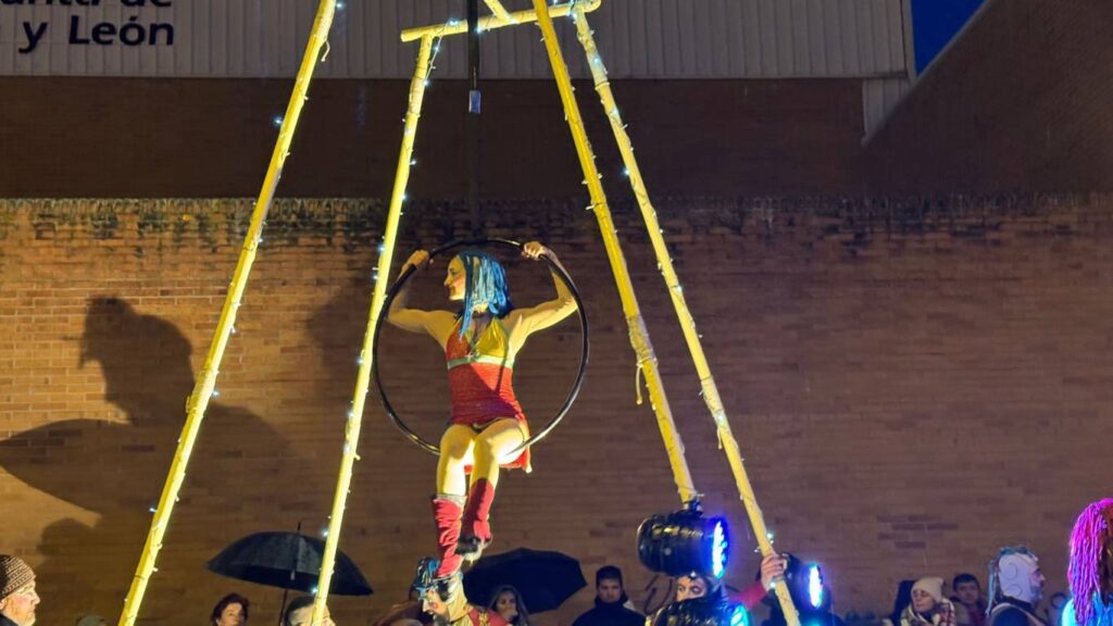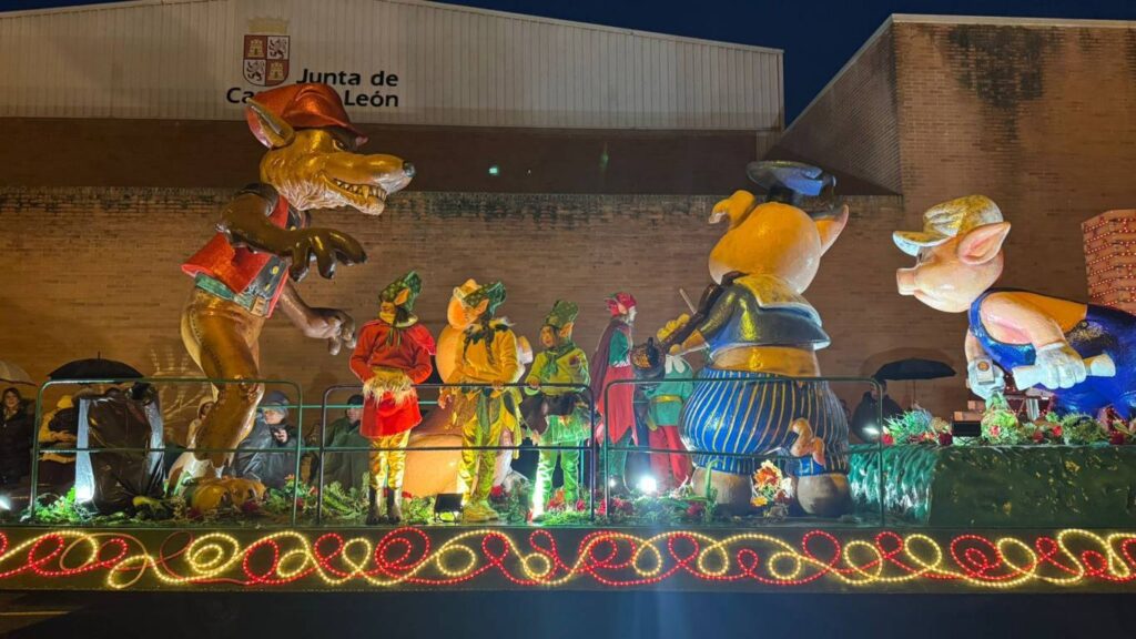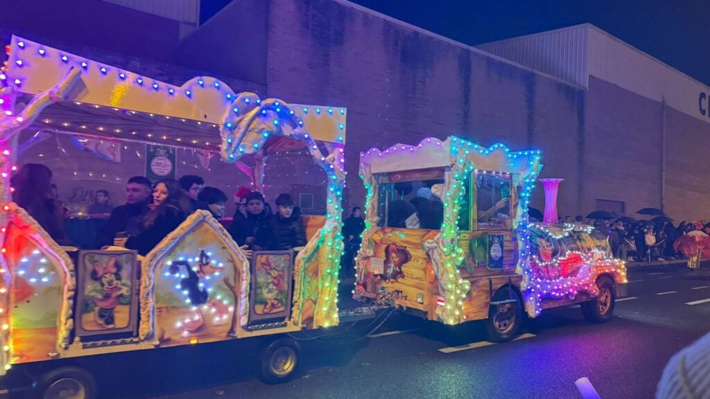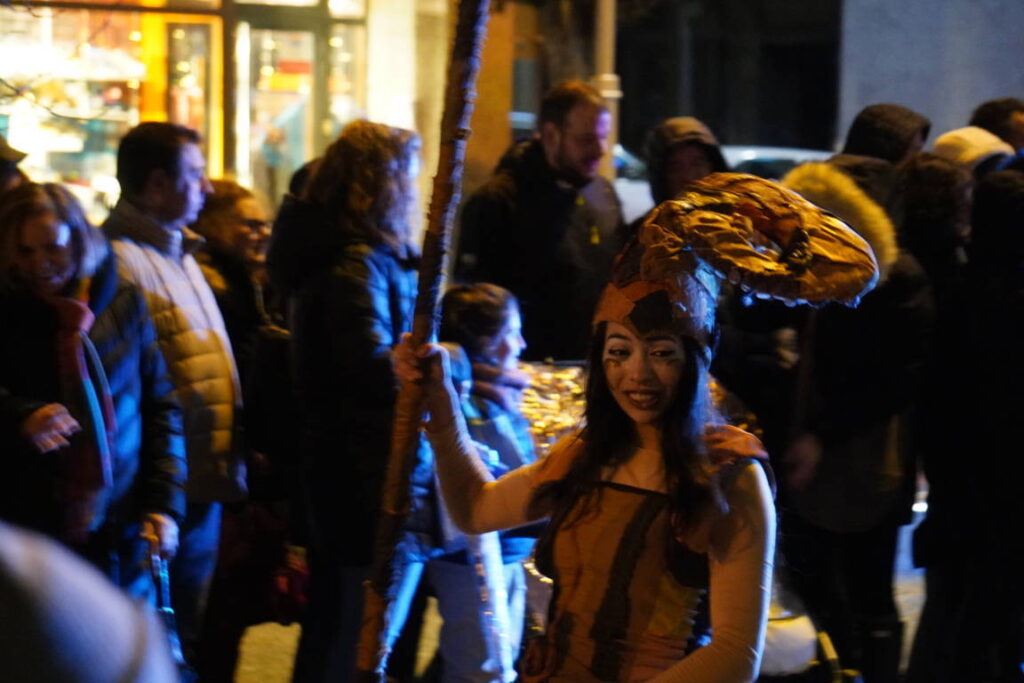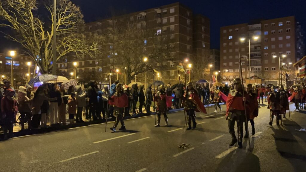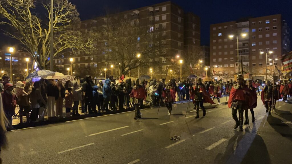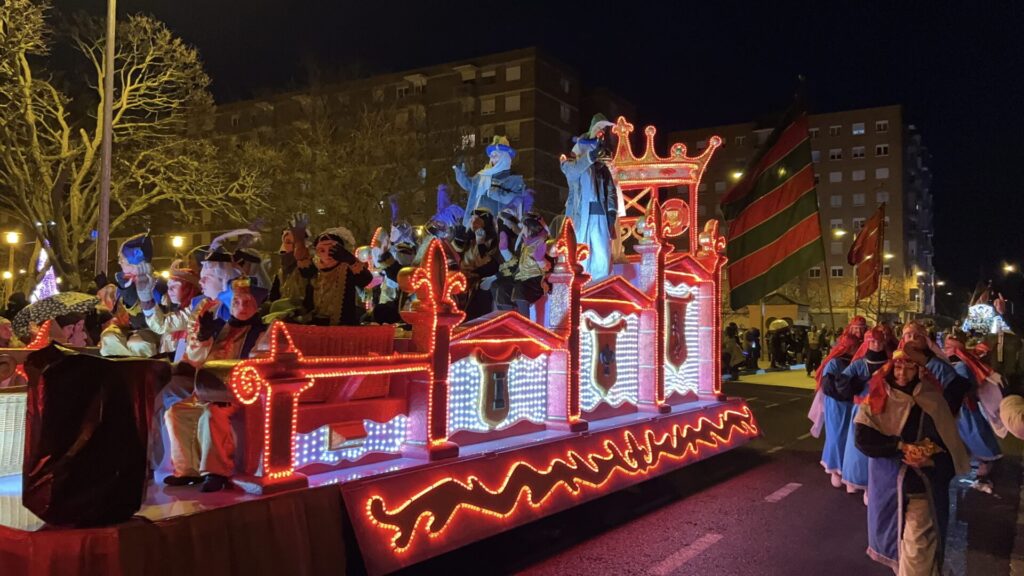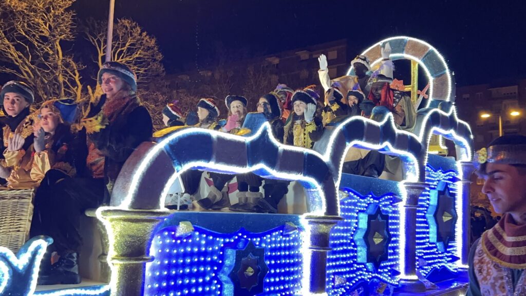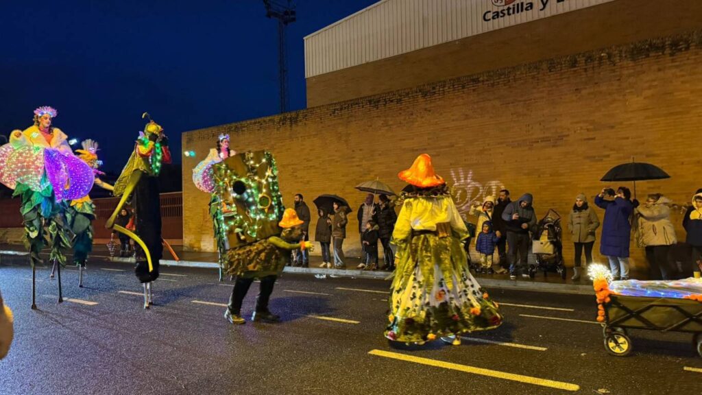 Y el tren turístico que durante estos días ha estado recorriendo la ciudad marcó junto a las mariposas luminosas, la segunda parte de la cabalgata que se volvió más tradicional. Con María José y el niño abriendo este acto, seguidos de los pastores y del Grupo de Danzas tradicionales Reino de Castilla.