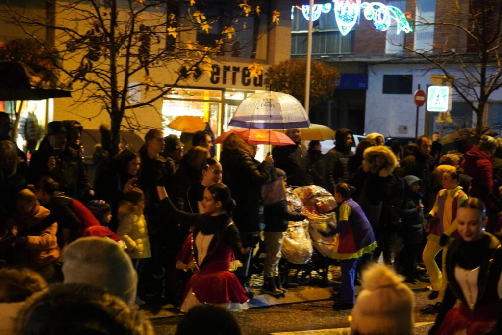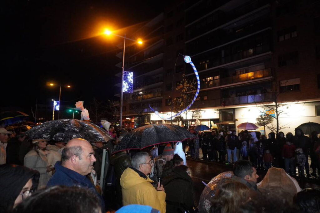 Todo este séquito llegó hasta la Plaza Mayor de la capital, donde la alcaldesa, Miriam Andrés, esperaba a sus majestades para ofrecerles las llaves de la ciudad, aunque el espectáculo musical se vio afectado debido a la lluvia que si había respetado buena parte de la cabalgata, ahí se mostró inclemente.
