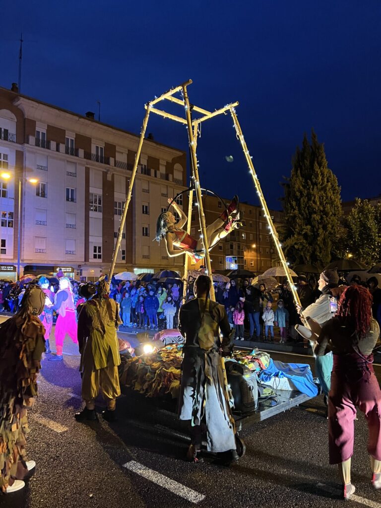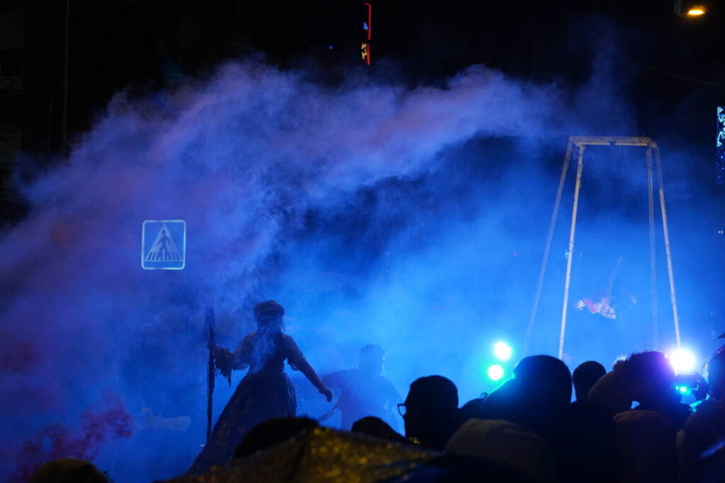 La danza llegó de la mano de los pinochos de la escuela de danza Smile, acompañando al propio pinocho antes de la primera carroza de la noche: la de Los Tres Cerditos.