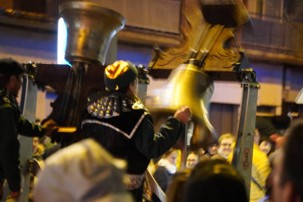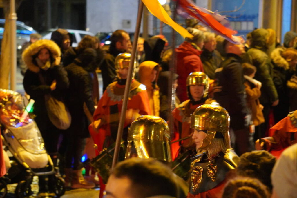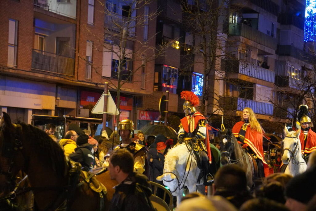 Los romanos, a caballo y a pie, un año más sirvieron de escolta a sus Majestades, anunciados por tambores y por un carro de Campanas.
