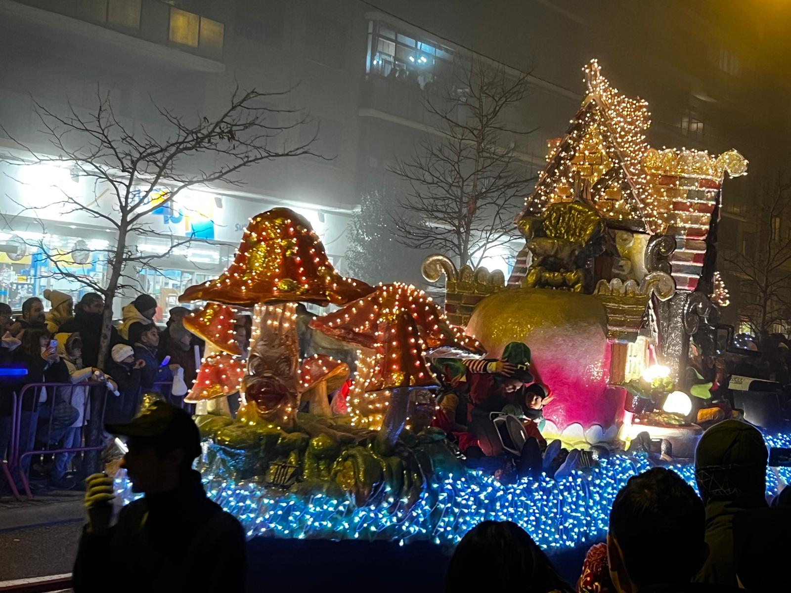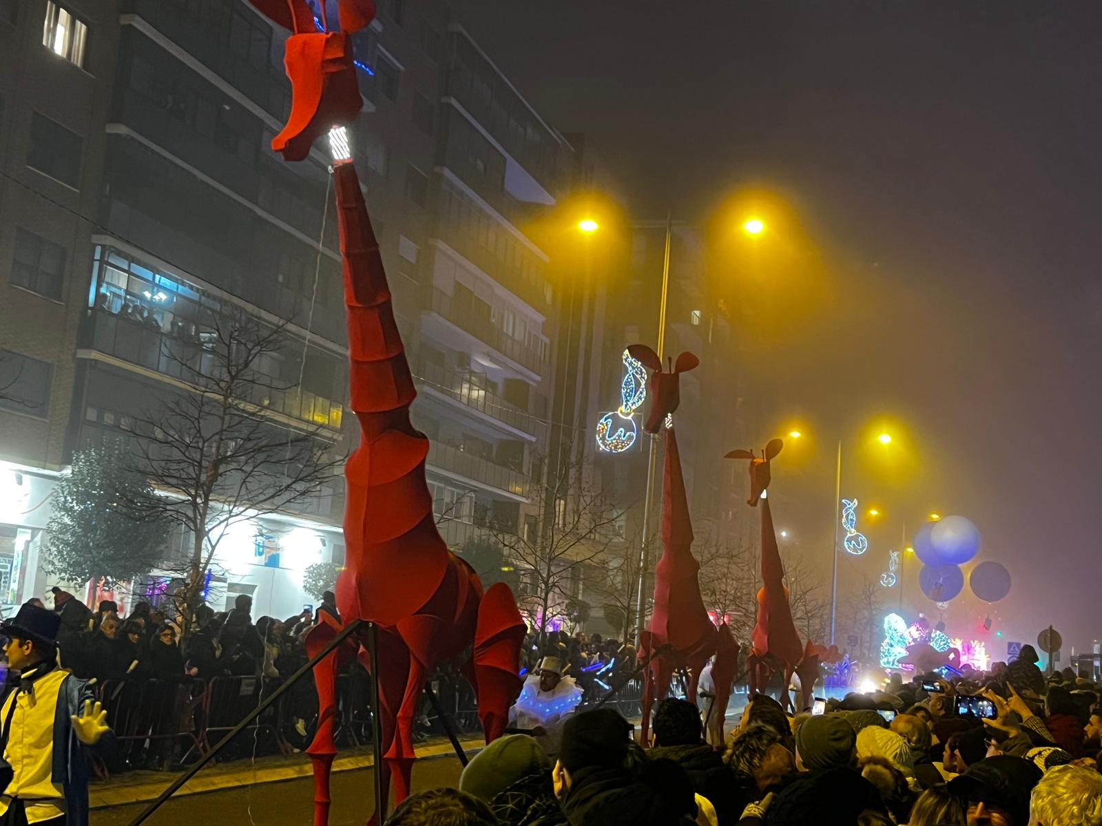 Cerca de un millar de personas, entre figurantes, artistas y organización ha colaborado en este desfile cargado de magia y de teatro de calle con elementos oníricos y figuras gigantescas intercaladas entre las seis carrozas que acompañaron a los Reyes de Oriente durante su periplo para ser agasajados por los palentinos antes de comenzar su reparto. Unos reyes que fueron recibidos por los niños palentinos que iluminaron su camino con las 5.500 barras de color que la organización entregó a los asistentes.