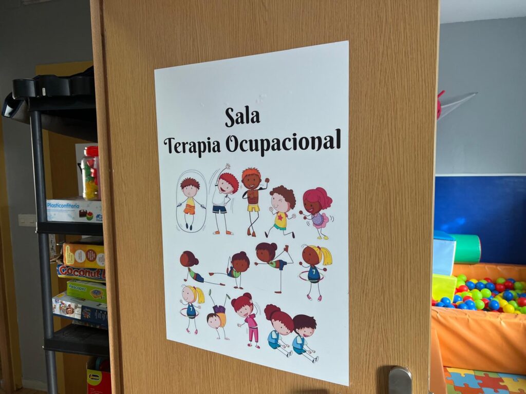 Gracias a las imágenes cedidas por las terapeutas ocupaciones, podemos comprobar un poco mejor la actividad que desarrollan dentro de la sala de terapia ocupacional. Su misión básica es generar estímulos en los pequeños por medio de juegos como una piscina de bolas o un columpio, al tiempo que favorecen el ocio de los niños.