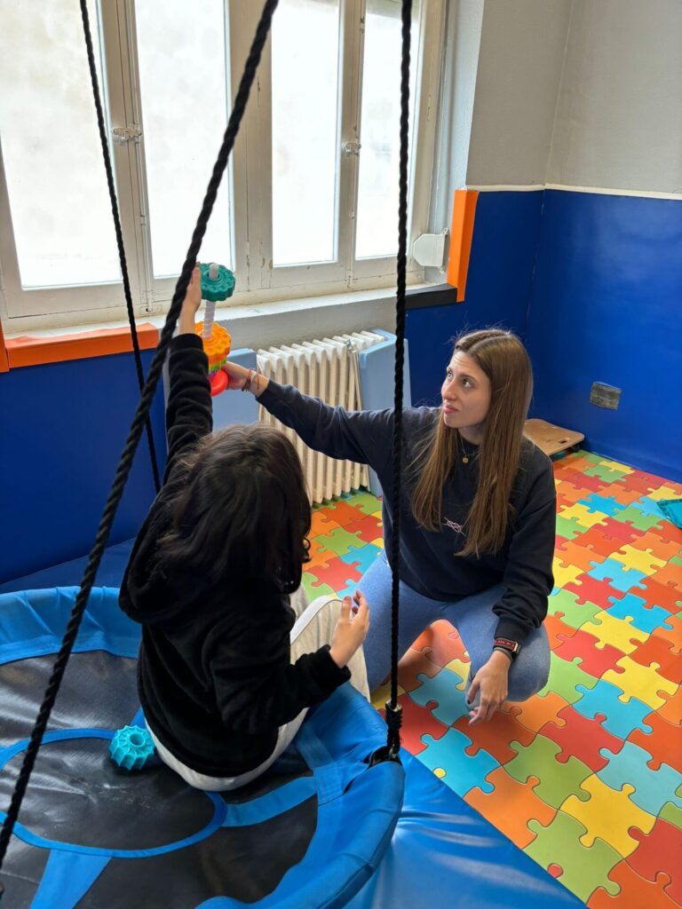 Un trabajo “encubierto” a través del juego mediante el cual las terapeutas generan actividades en los pequeños para que puedan aplicar en su vida diaria: “Cuando estoy jugando con el niño y por ejemplo está girando las roscas del columpio, luego va a poder también llevarse la cuchara a la boca y comer solo”, apunta Sheila.