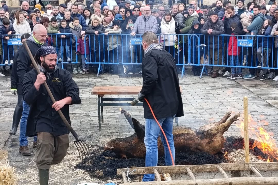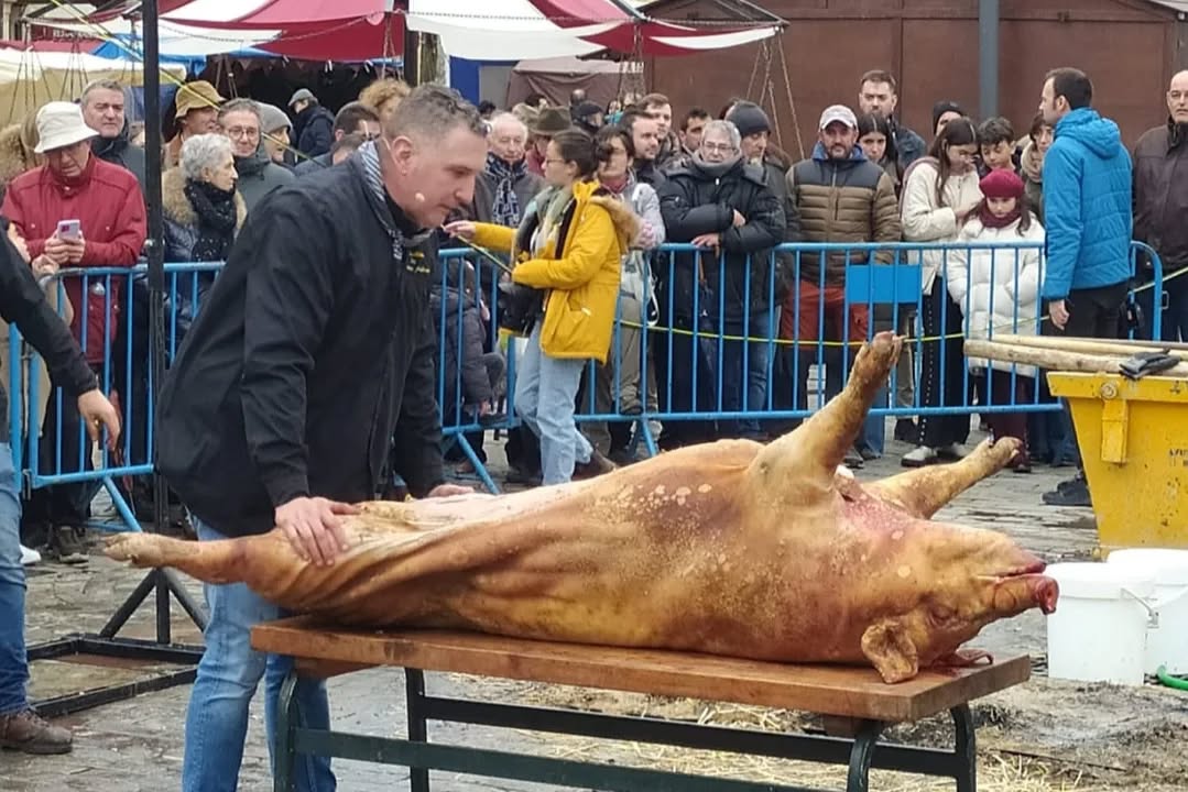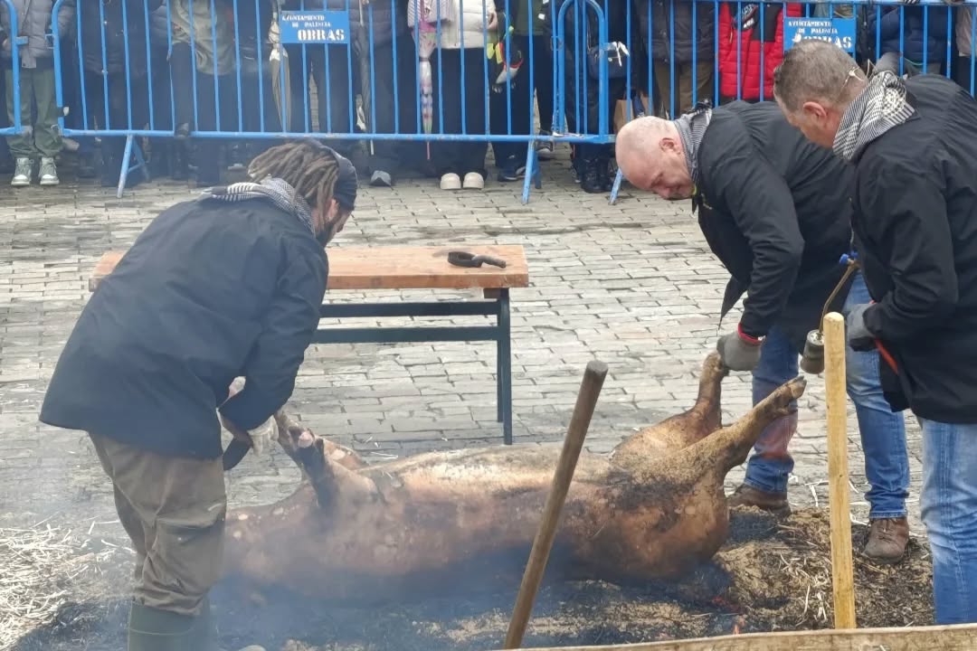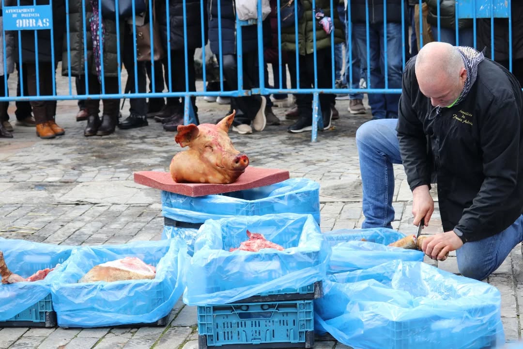 La tradición de la matanza del cerdo congrega a cientos de personas en la Plaza Mayor