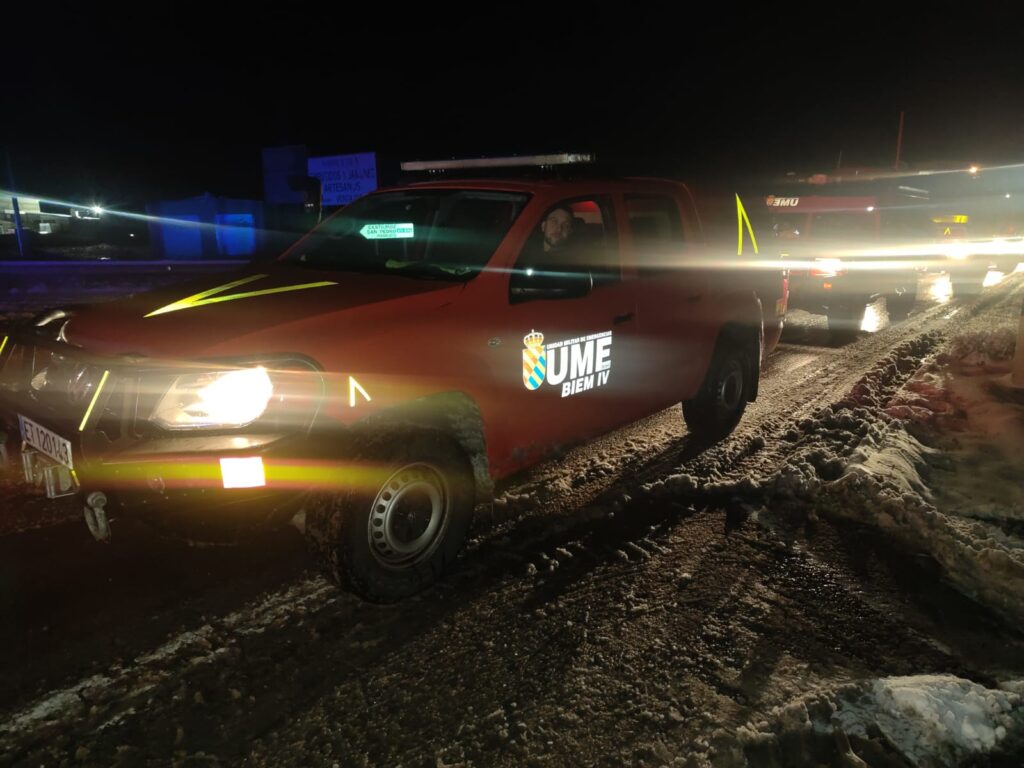 La UME ha desplegado numerosos efectivos así como un importante número de medios materiales, desde vehículos todoterreno y palas, entre otros.