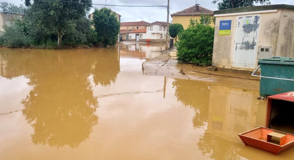 Las abundantes lluvias de las últimas horas desbordaron hoy el arroyo de la Vega y provocaron la inundación de varias calles de Cerecinos de Campos (Zamora), lo que afectó a viviendas y naves ganaderas.