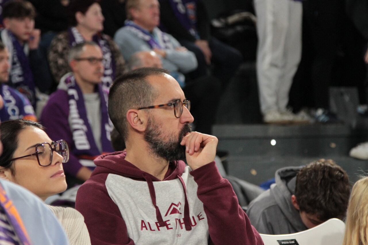 El otro, el 25, lo propuso la Demencia, la afición del Estudiantes. Animando durante todo el partido, hasta cuando las cosas ya pintaban mal, no, lo siguiente con los suyos. Puede, dicen, que no se les escuchó mucho por todo el pabellón. Buena razón de ello, la cifra de los que se desplazaron.