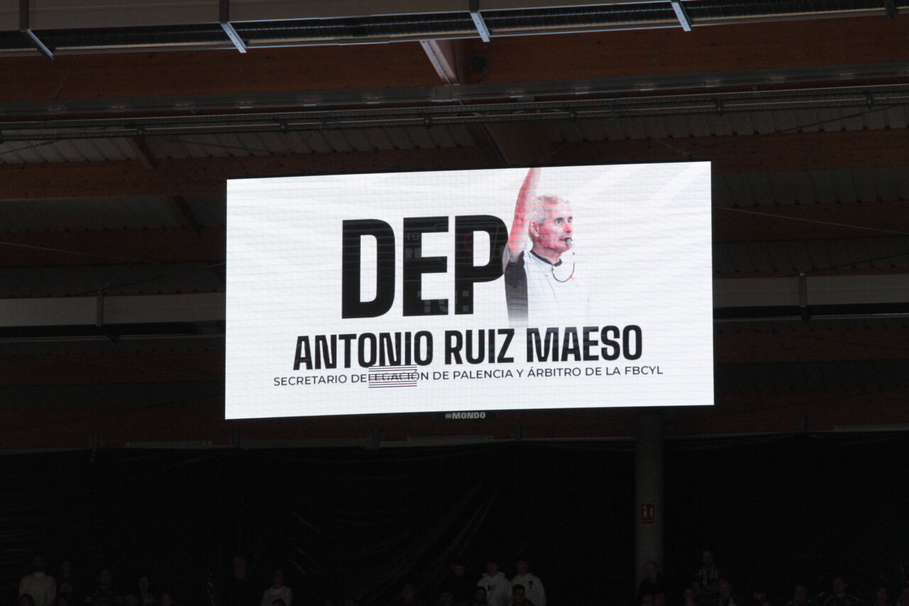 No comenzó al tarde animada. Más bien todo lo contrario. Con el recuerdo, con un minuto de silencio, a Antonio Ruiz Maeso, secretario de la Delegación Palentina de Baloncesto y Árbitro de la Federación Regional. Silencio y respeto en el municipal con todo el público de pie. Alguna lágrima se escapó en la mesa de anotadores.