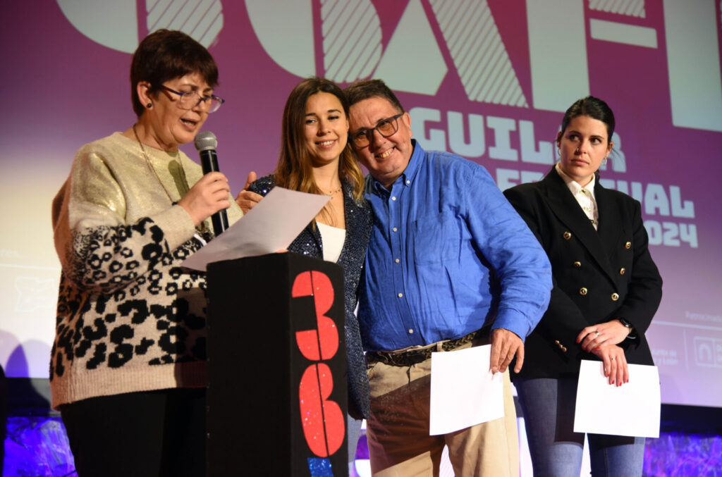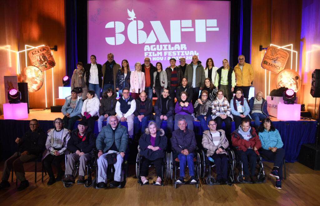 La alcaldesa de Aguilar, María José Ortega, dos de los coprotagonistas de la película, Pilar Gómez y Enrique Peña, y dos profesionales del centro Virgen de Llano de Aguilar de Campoo, Cristina García y Bárbara Rojo participaron también en el acto de presentación. “Para nosotros es un lujo tener de padrino a Leo Harlem y que haya venido hoy a Aguilar”, ha expresado Peña. Familiares, amigos y numerosos vecinos y vecinas de Aguilar han querido estar presentes en esta proyección tan especial con la que las personas usuarias del centro, que ya participan como jurado en el festival aguilarense, han dado un paso más al estar presentes en su programación.