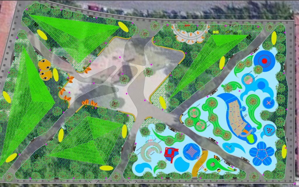 El nuevo parque infantil está planificado que cuente con un total de 16 juegos, entre los que destacará uno imitando a un animal gigante que será alrededor del que graviten los demás.
