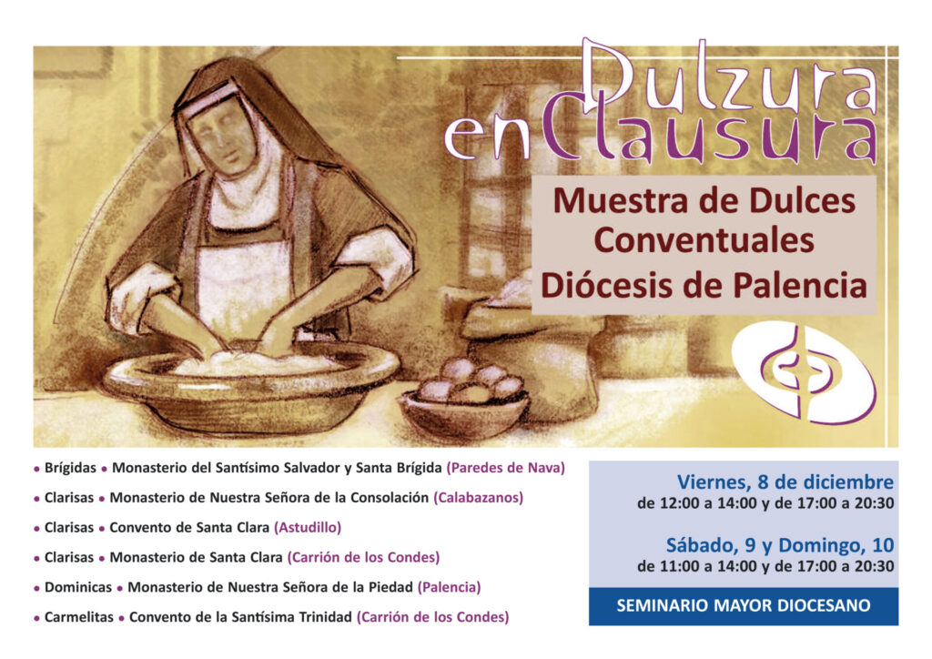 Además, la elaboración de dulces es, para muchos de los conventos conventos y monasterios de Vida Contemplativa de Palencia, su medio de subsistencia y su principal fuente de ingresos. Algo que se pondrá de nuevo de manifiesto en la ya tradicional cita de la muestra “Dulzura en Clausura”, que este año se celebrará en el hall del Seminario Mayor Diocesano de Palencia, del 8 al 10 de diciembre. Esto es, a lo largo del puente de la Constitución y la Inmaculada.