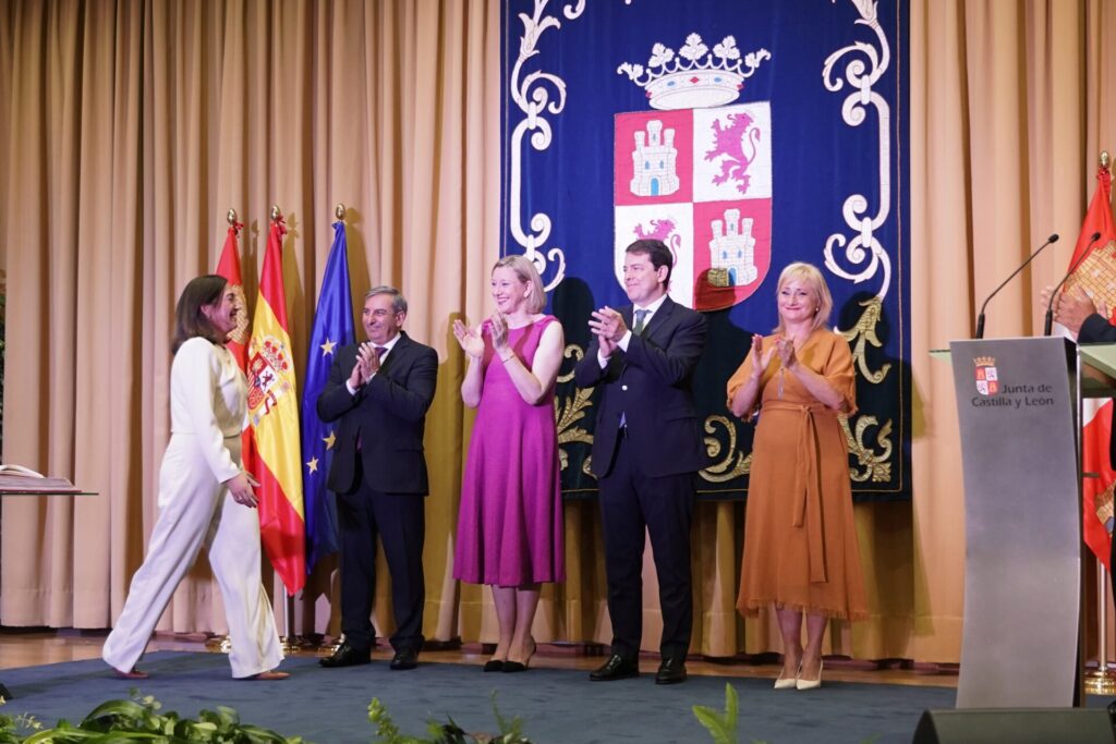 Fernández Mañueco se mostró convencido de que la nueva vicepresidenta de la Junta y titular de Familia e Igualdad de Oportunidades, Isabel Blanco, responderá los retos exigidos en el nuevo cargo, donde sustituye a Juan García-Callado (Vox), aunque no tendrá la Vicepresidencia no contará con una estructura propia de altos cargos asociados a la misma como en la etapa anterior.