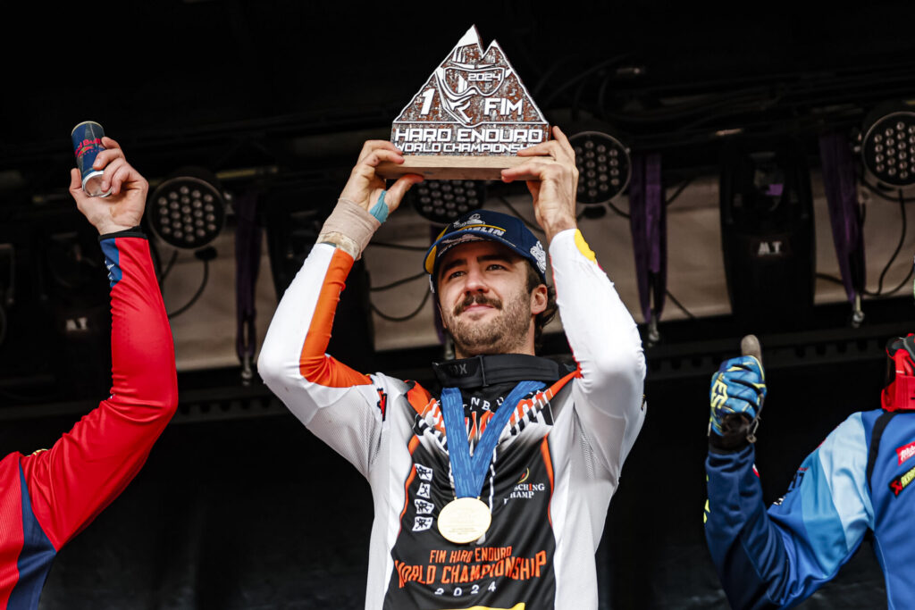 Paralelamente a todo esto, Lettenbichler tenía su mirada puesta en el campeonato. Tras sufrir una fuerte caída a mitad de carrera, el alemán hizo de tripas corazón para seguir, optando por mantener su posición y asegurar el título. Controlando su posición en las últimas vueltas, escaló la última subida para proclamarse Campeón del Mundo de Hard Enduro FIM 2024, consiguiendo así su tercera corona mundial consecutiva.