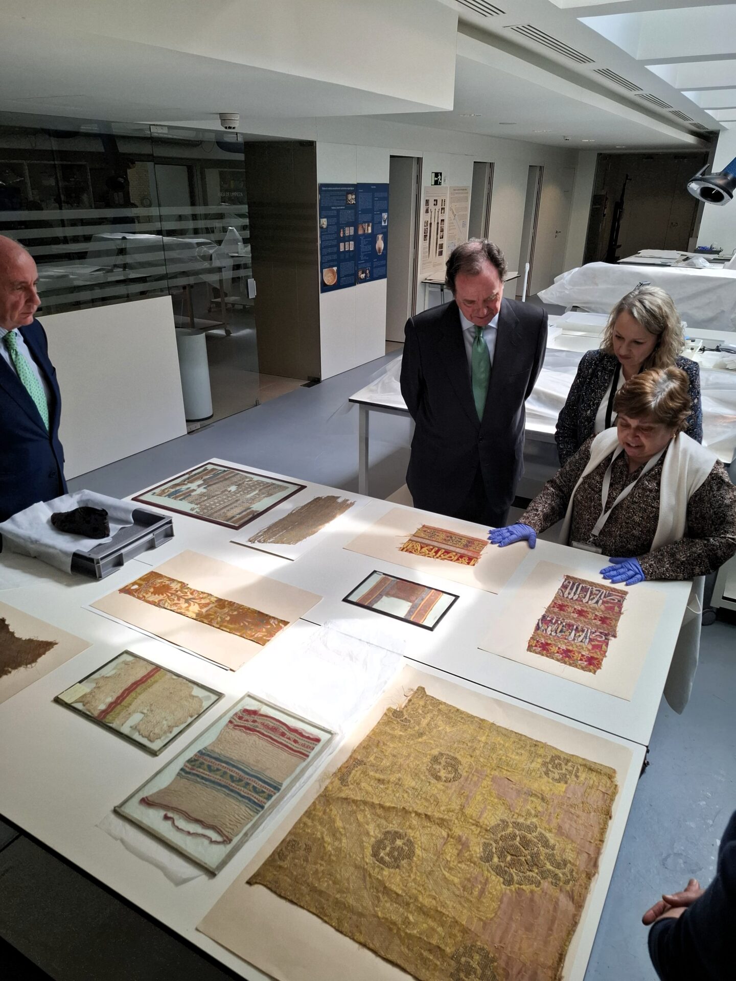 Como una serie de tejidos medievales andalusíes y cristianos de gran valor patrimonial del siglo XIII y XV. Destacan entre ellos, el fragmento de tela nazarí perteneciente a las vestiduras del infante don Felipe o su esposa doña Inés Téllez, donde se percibe brocados de seda de vivos colores que conforman diversos dibujos alternándolos con lacerias de ocho y motivos de acicate.