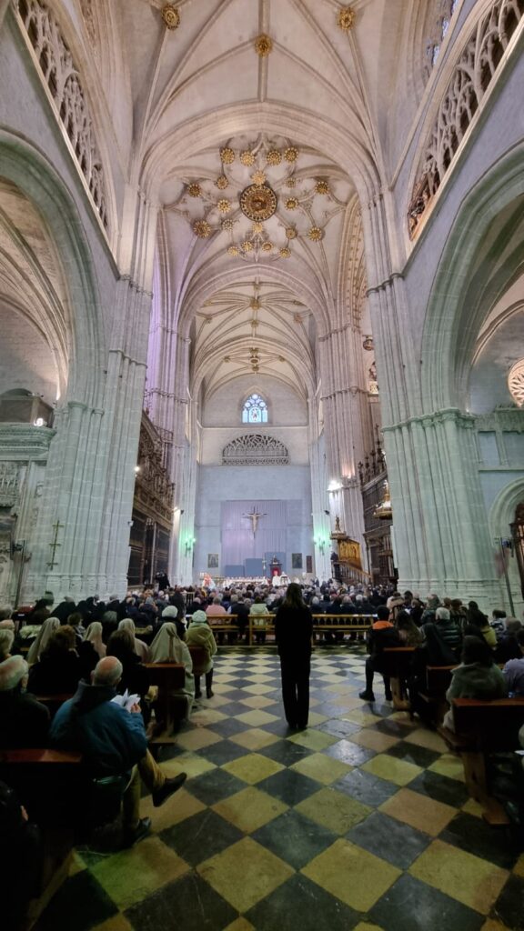 Tres corales acompañaron la ceremonia. Dos de ellas de la provincia de Palencia (Capilla Clásica de la Catedral y Regina Angelorum) y una tercera, Etxarri Aranatz, del pueblo natal de Garciandía. En total, casi 90 personas ocuparon el coro de la seo.