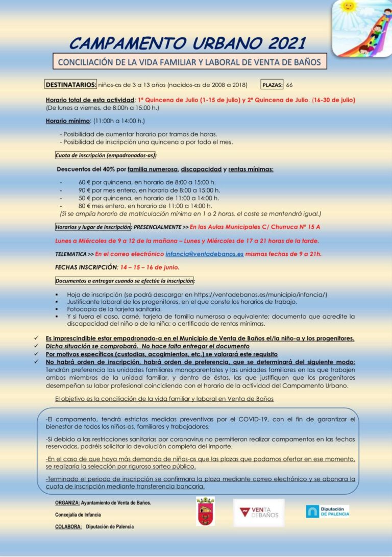 Venta de Baños-Actividad estival El Ayuntamiento de Venta de Baños, a través de la Concejalía de Infancia, en colaboración con...