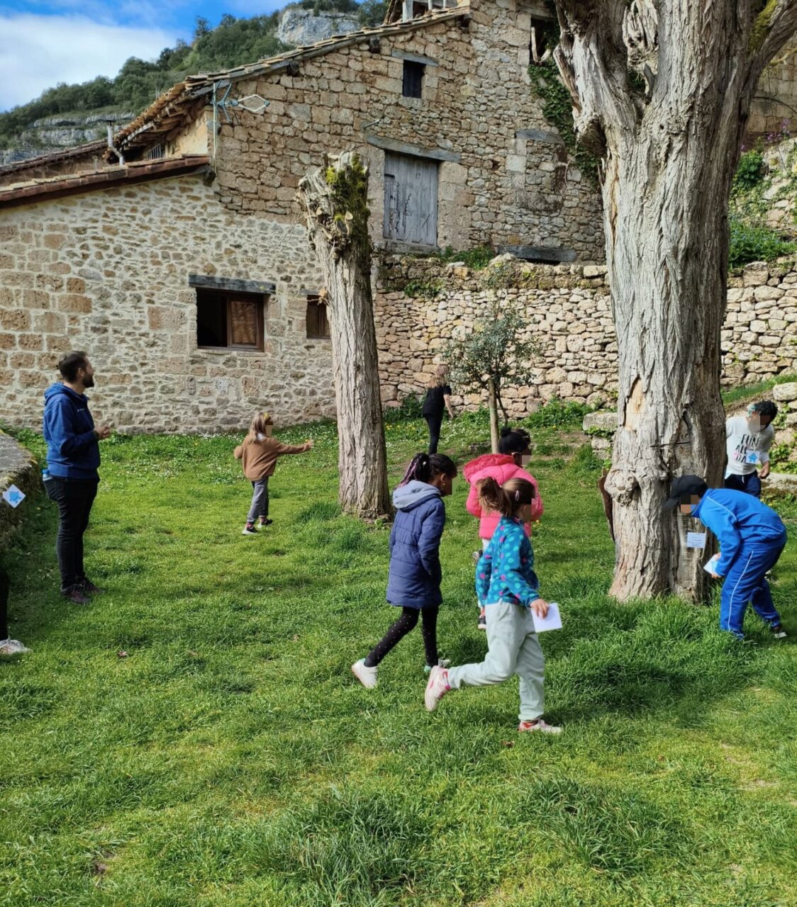 La experiencia de aprendizaje comenzó con el contacto directo de los niños y niñas con elementos como el agua, el paisaje y las cavidades kársticas. En este sentido, el enclave elegido -un paisaje modelado por la acción del agua sobre las calizas de La Lora que da lugar a formaciones de gran singularidad- permitió trabajar sobre el terreno espacios de gran valor como la cascada de Orbaneja, la cueva del Agua o las hoces del río Ebro.