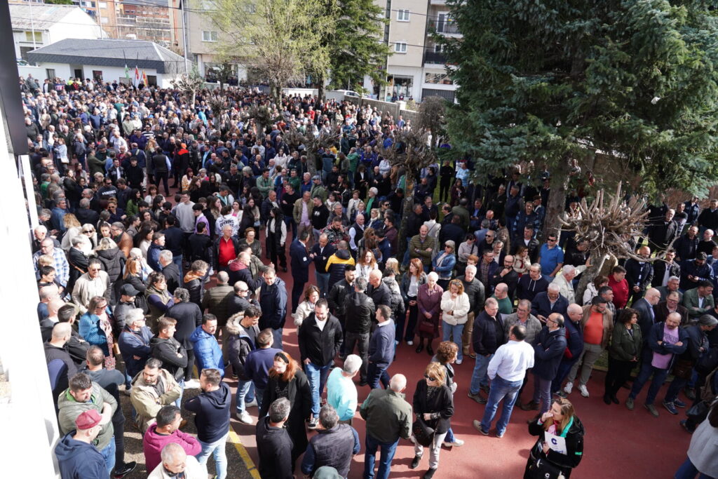 La mayor parte de los asistentes no pudo entrar al pabellón, que se abarrotó enseguida y asistió al sepelio desde el recinto del polideportivo municipal, donde se colocó un altavoz, además de en los exteriores del recinto. Fue precisamente en el patio donde permanecieron los cargos institucionales que quisieron mostrar su apoyo a la familia minera, entre los que se encontraban la ministra para la Transición Ecológica y el Reto Demográfico, Sara Aagesen, los presidentes de la Junta de Castilla y León y del Principado de Asturias, Alfonso Fernández Mañueco y Adrián Barbón, o los delegados del Gobierno en Castilla y León y el Principado de Asturias, Nicanor Sen y Adriana Lastra.