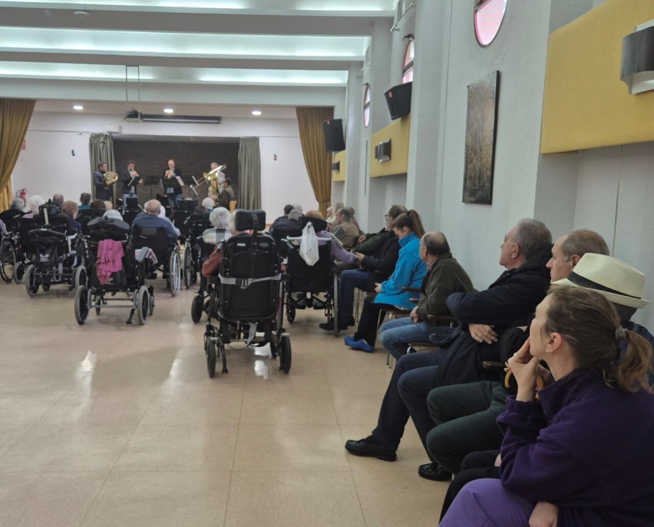 Durante la jornada de hoy, un quinteto de metales de la formación sinfónica ha ofrecido música de cámara a los asistentes del Centro de Educación Especial ‘Carrechiquilla’ y de la Residencia de Personas Mayores ‘Puente de Hierro’ de Palencia, en el marco del programa «Miradas”.